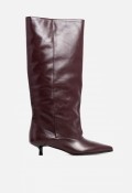 Su puntera afilada crea una silueta estilizada y muy femenina, mientras que el tacón fino tipo kitten aporta una altura delicada y cómoda, perfecta para el día a día o para looks más arreglados. Gracias a su construcción flexible, la caña adquiere un suave efecto arrugado que añade naturalidad y movimiento al diseño.