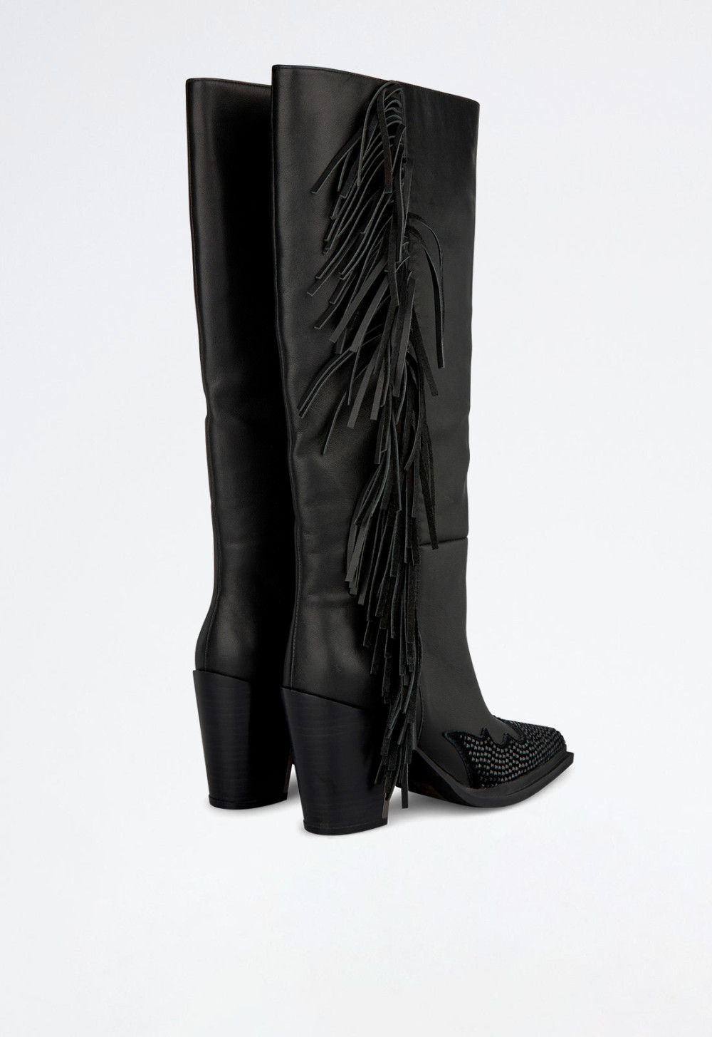 Bota de Mujer en color Negro, fabricado en Piel con Tacón Medio y una altura de 5 cm.