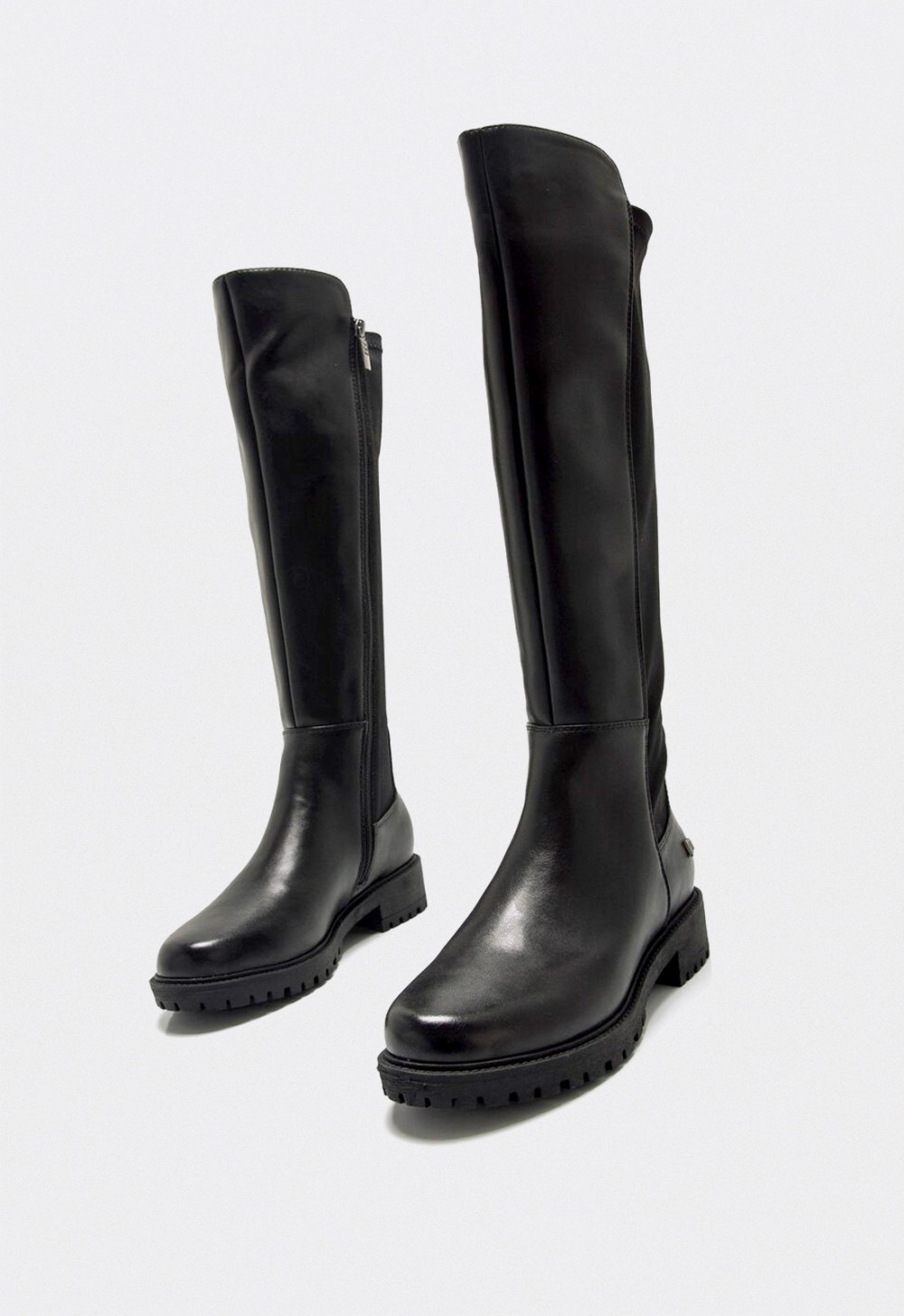 La bota alta de mujer Mustang Campa en color negro es un básico versátil y moderno que aporta comodidad y estilo a cualquier look de diario. Su diseño minimalista con caña elástica que se adapta a la pierna garantiza un ajuste perfecto, mientras que la cremallera lateral facilita el calce sin esfuerzo.