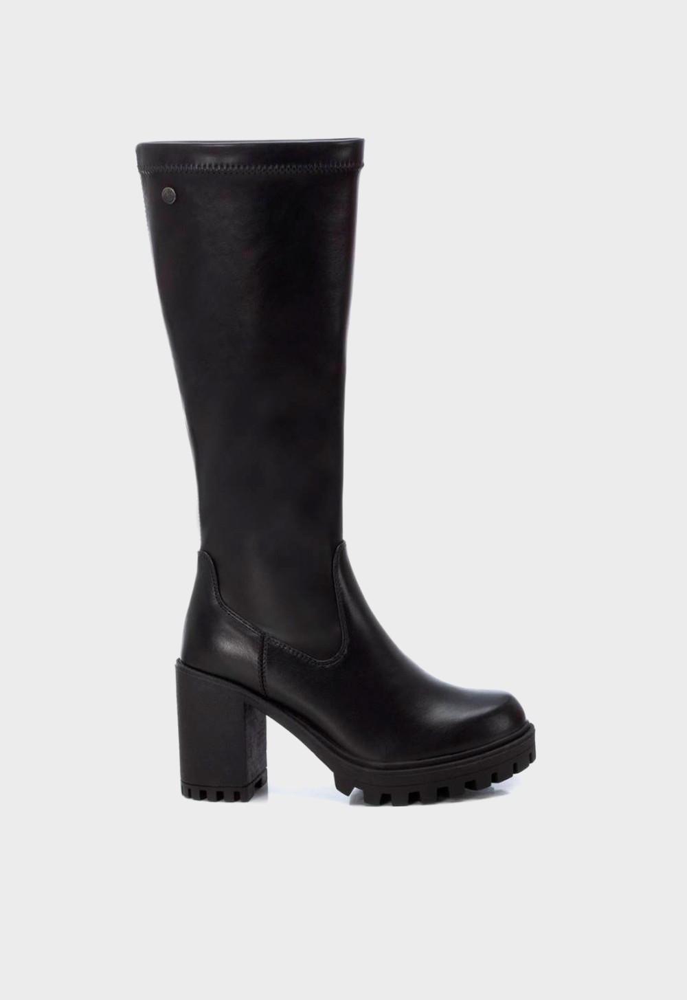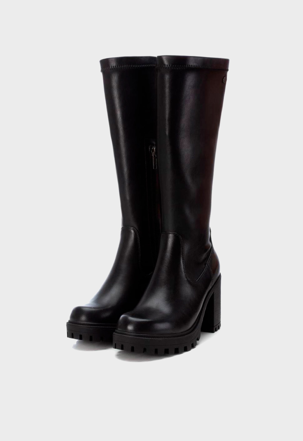 Bota de Mujer en color Negro, fabricado en Piel sintética con Tacón Alto y una altura de 10 cm.
