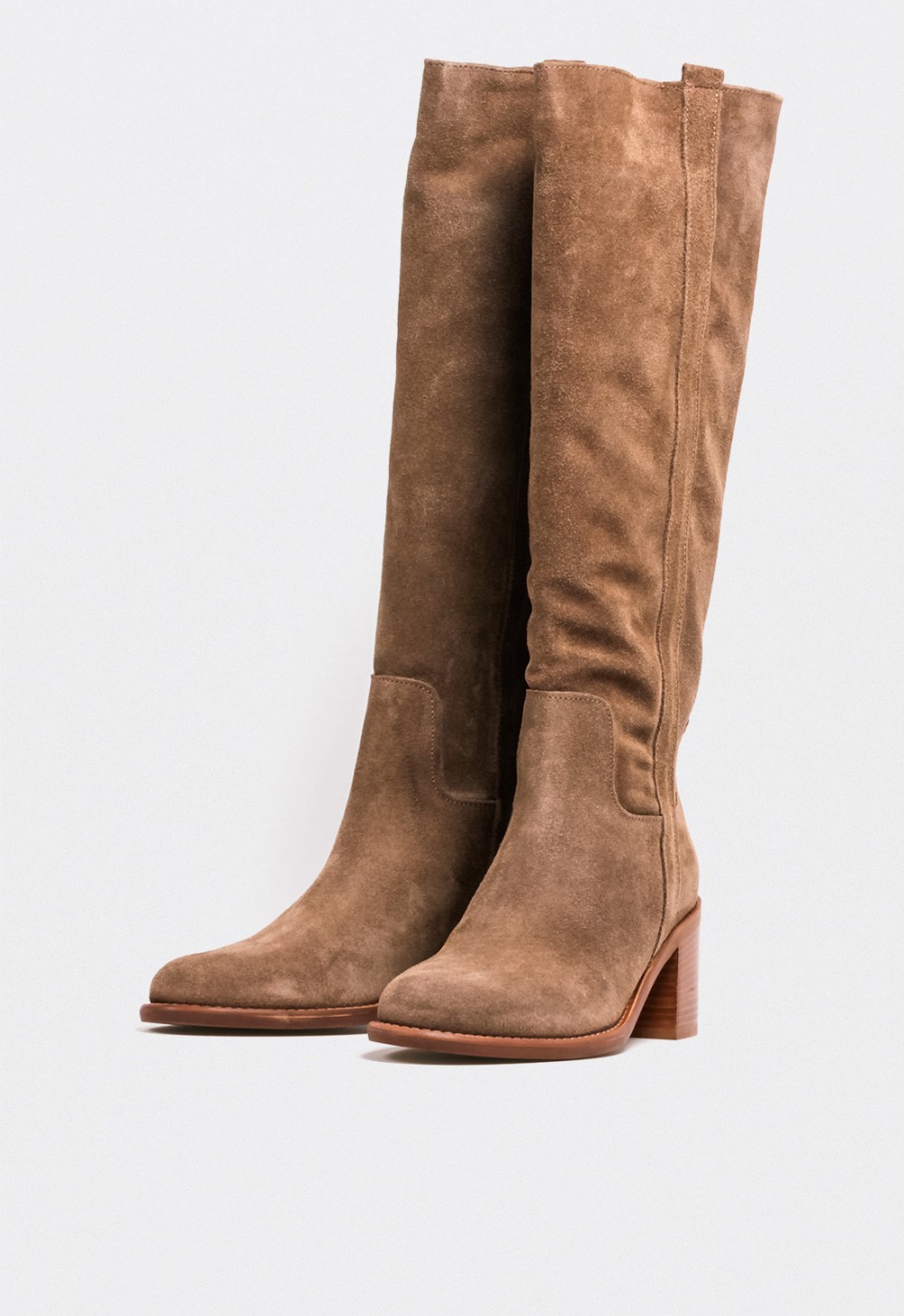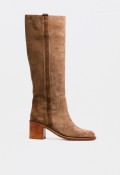 Bota campera alta de mujer en piel serraje taupe con tacón ancho – estilo elegante y versátil GLO isa