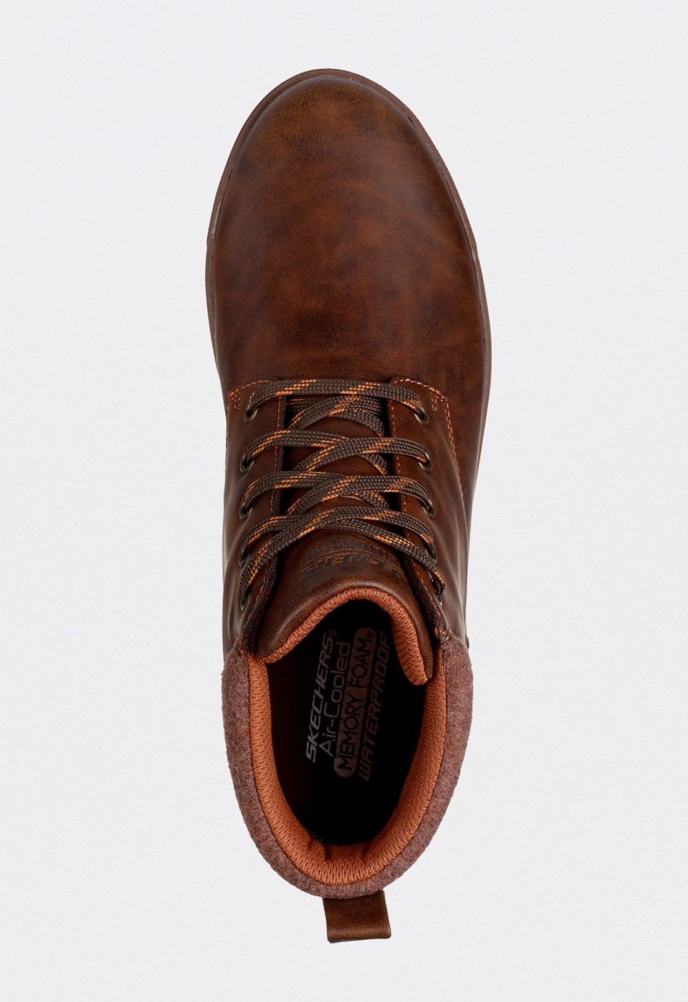 Las botas Skechers 210945-CHOC en color marrón combinan elegancia, resistencia y confort en un diseño versátil ideal para el día a día. Fabricadas en polipiel waterproof, mantienen los pies secos incluso en condiciones húmedas, mientras el forro interior textil suave ofrece una sensación de abrigo y bienestar. Su diseño con cordones y suela plana antideslizante garantiza estabilidad y comodidad en cada paso. Un modelo funcional con un toque moderno, perfecto tanto para looks urbanos como para outfits más cuidados.
