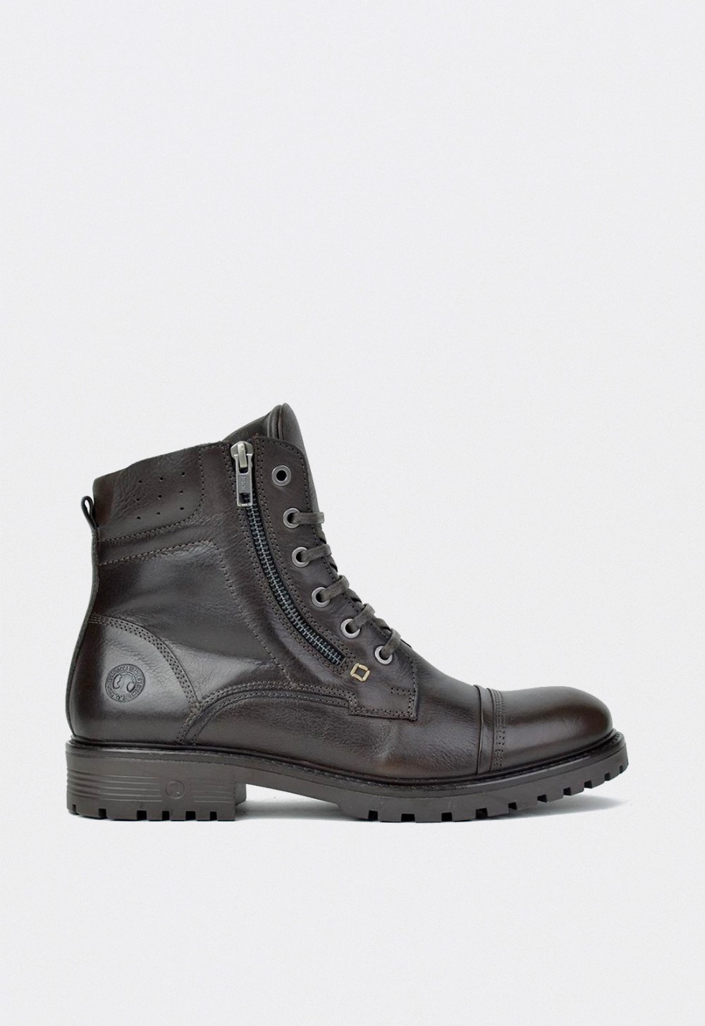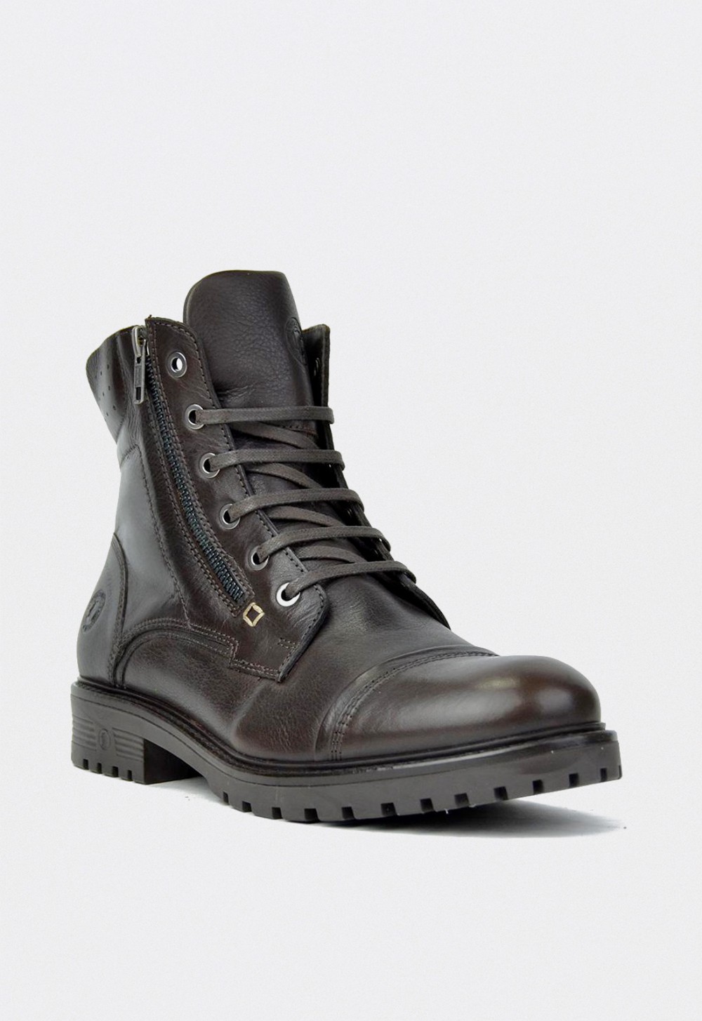 Su cierre mixto con cordones y cremallera lateral garantiza un ajuste seguro y práctico, mientras que el forro combinado en piel y textil aporta transpirabilidad y confort. La plantilla textil extraíble termoconformada mejora la pisada, y la suela de fibra sintética con tacón de 3,5 cm asegura estabilidad y resistencia en cualquier terreno.