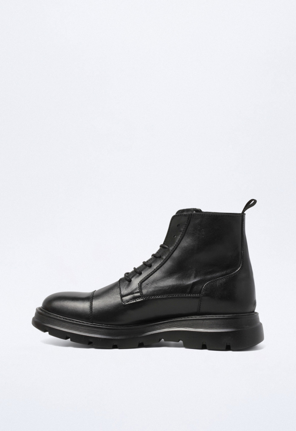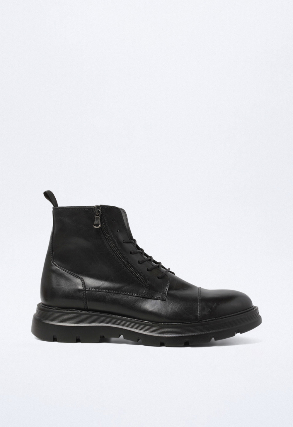 Botín de Hombre en color Negro, fabricado en Piel con Plano y una altura de 2 cm.