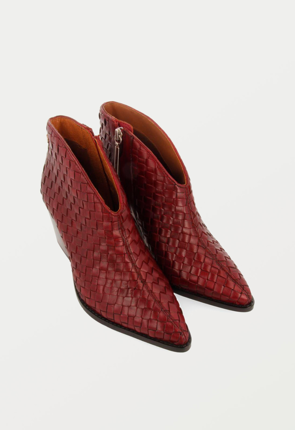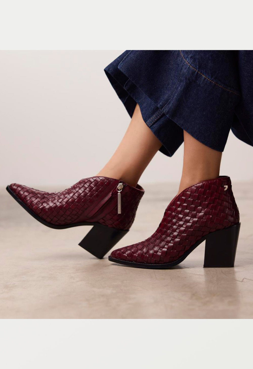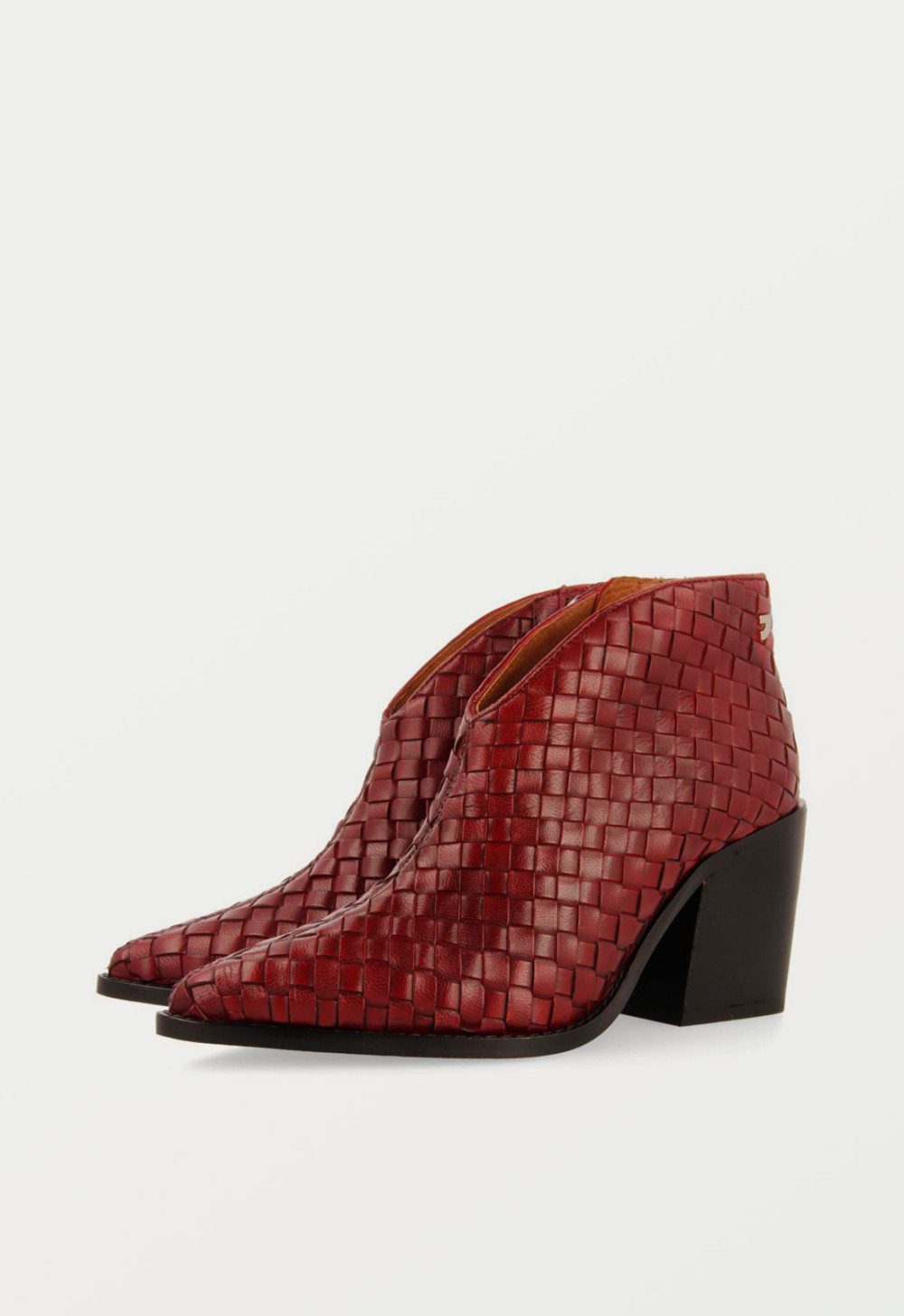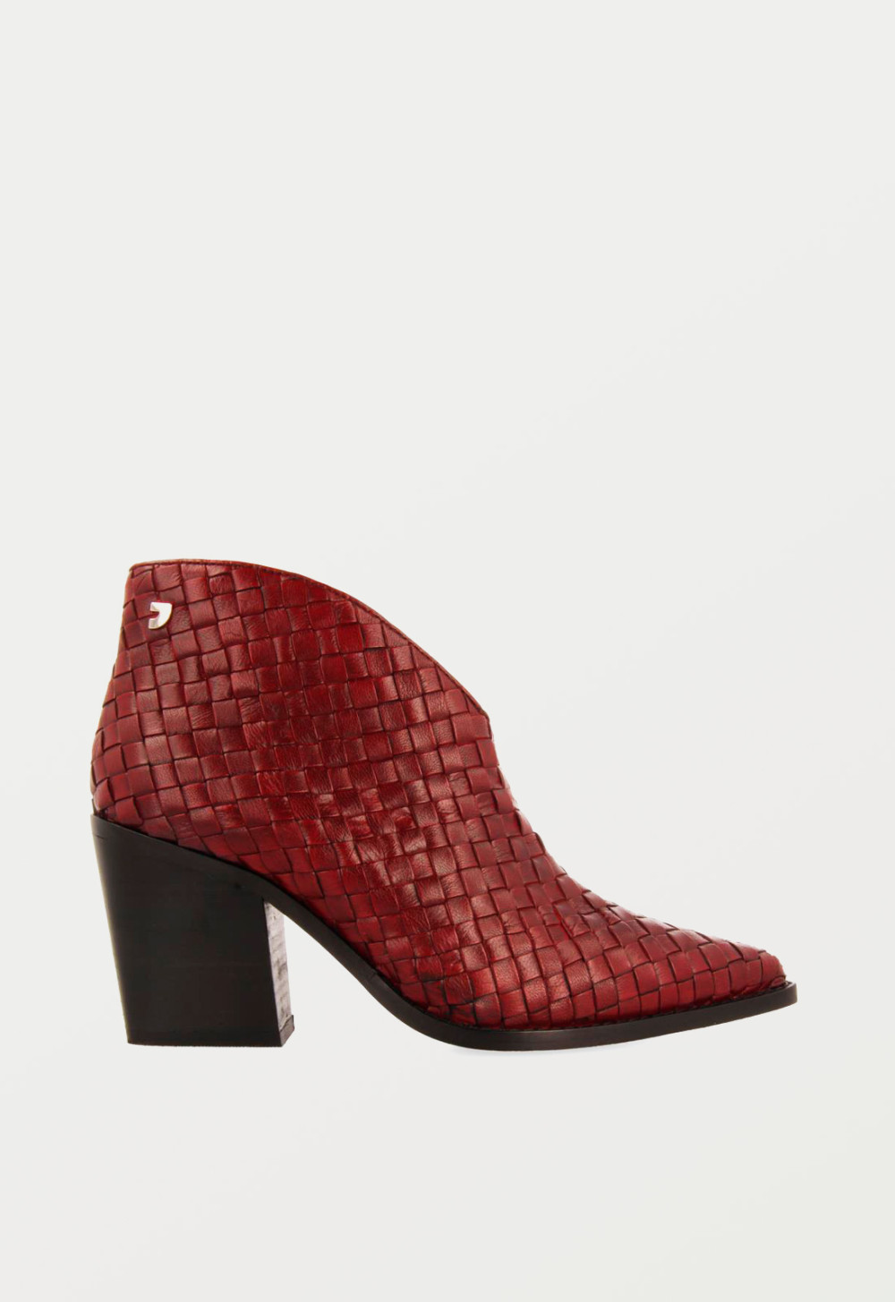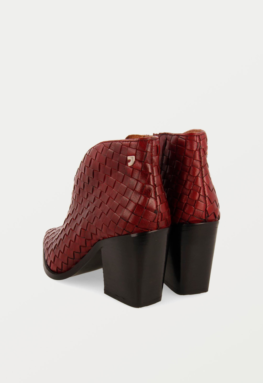 Botín de Mujer en color Burdeos, fabricado en Piel, altura tacón 7,5 cm.