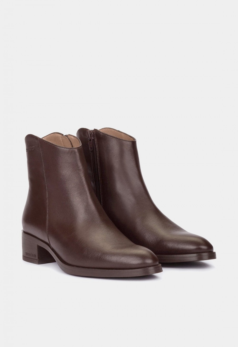 Botines Wonders BONJOUR 01 Marrones de mujer. Piel lisa, diseño atemporal con tacón medio y plantilla MemoryGel. Estilo y confort fabricado en España.