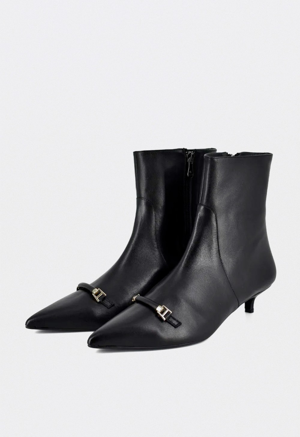 Su tacón kitten de 4,5 cm (1,75”) ofrece una altura discreta que equilibra estilo y confort, ideal para llevar durante todo el día sin renunciar a la sofisticación. Incorporan cremallera lateral para un calce fácil y un forro interior de piel, que garantiza suavidad y transpirabilidad.