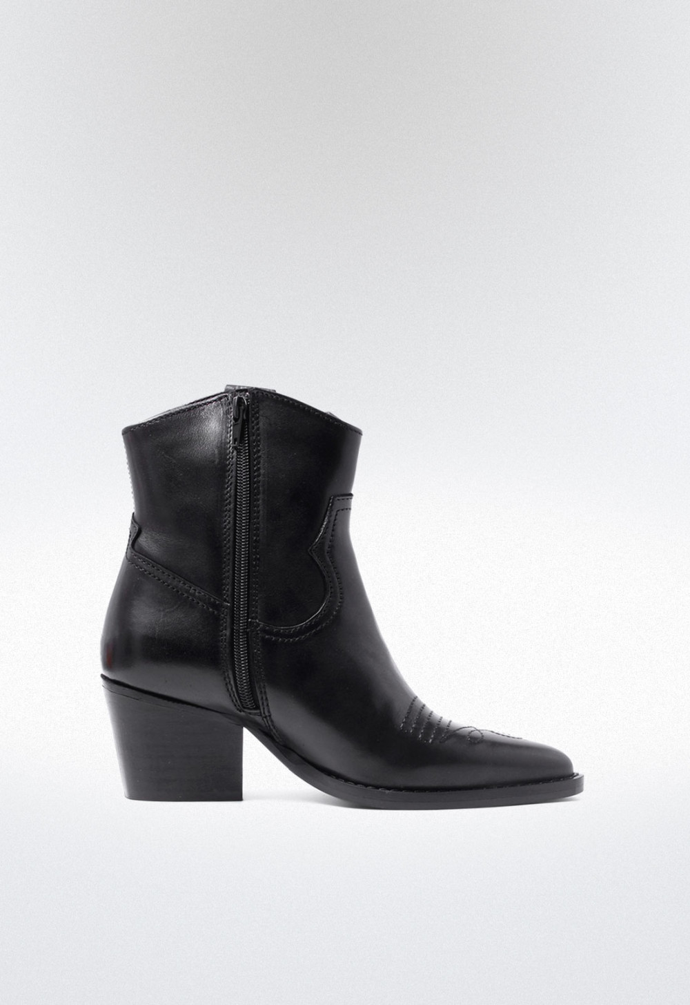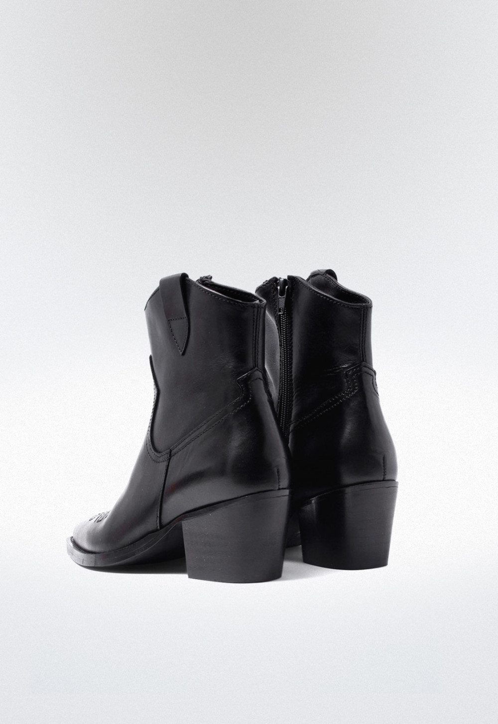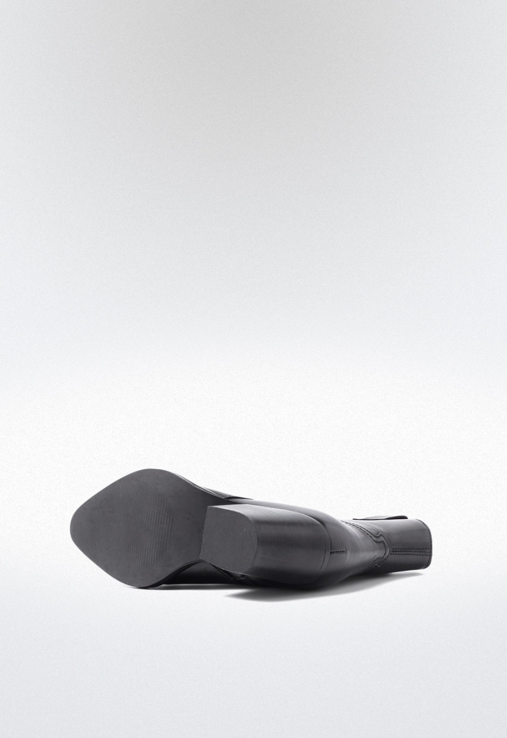 Material de Alta Calidad: Confeccionado en piel negra de alta calidad, el botín ofrece una durabilidad superior y un acabado lujoso. La textura suave del cuero asegura que el botín mantenga su apariencia y estructura incluso con el uso diario.