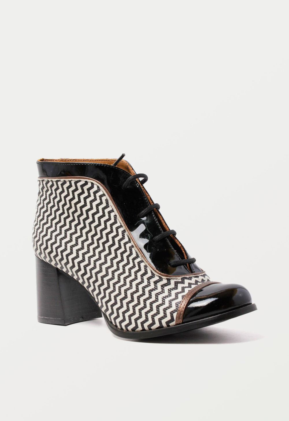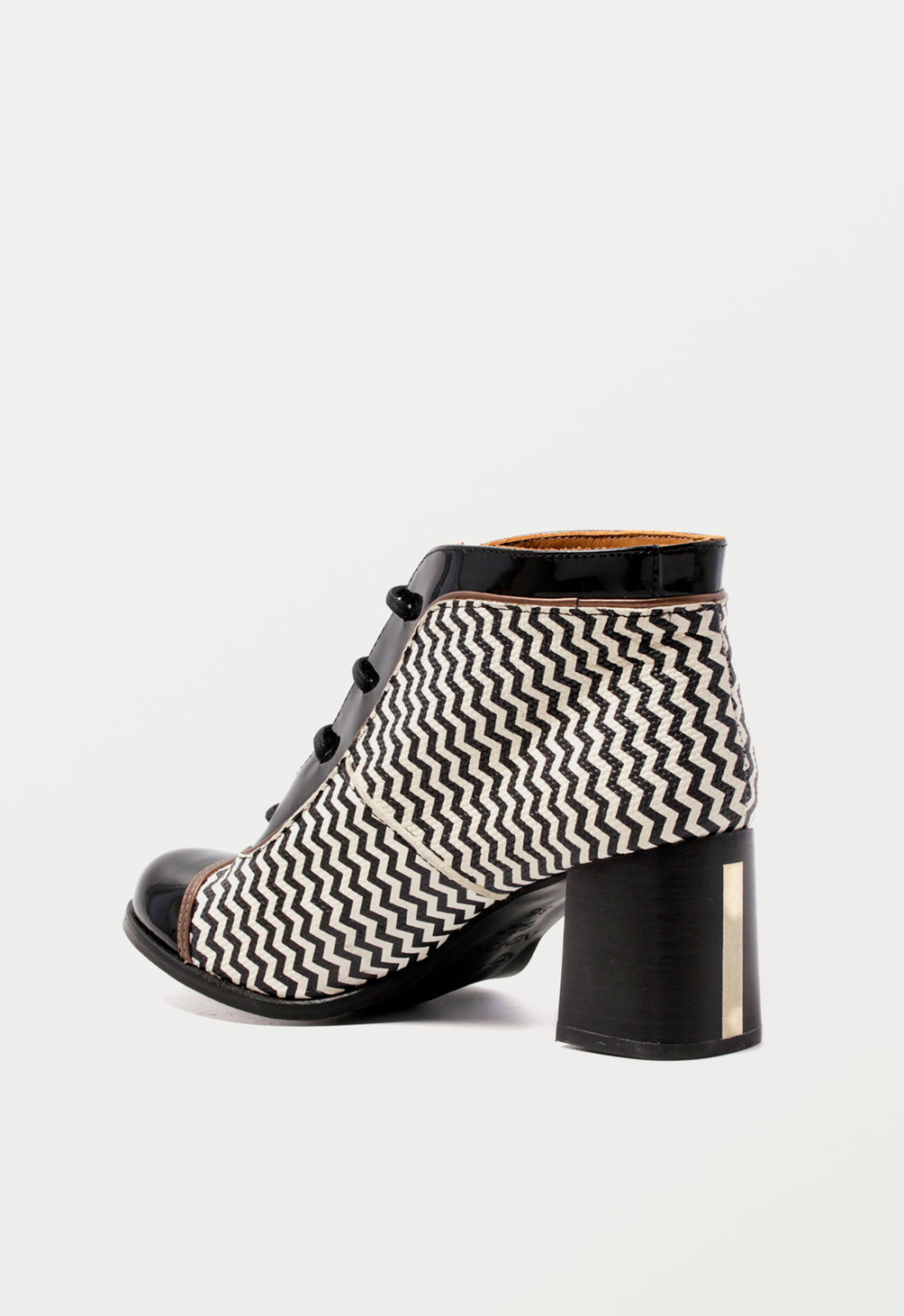 Botín de Mujer en color Negro, fabricado en Piel con Tacón Bajo y una altura de 3 cm.