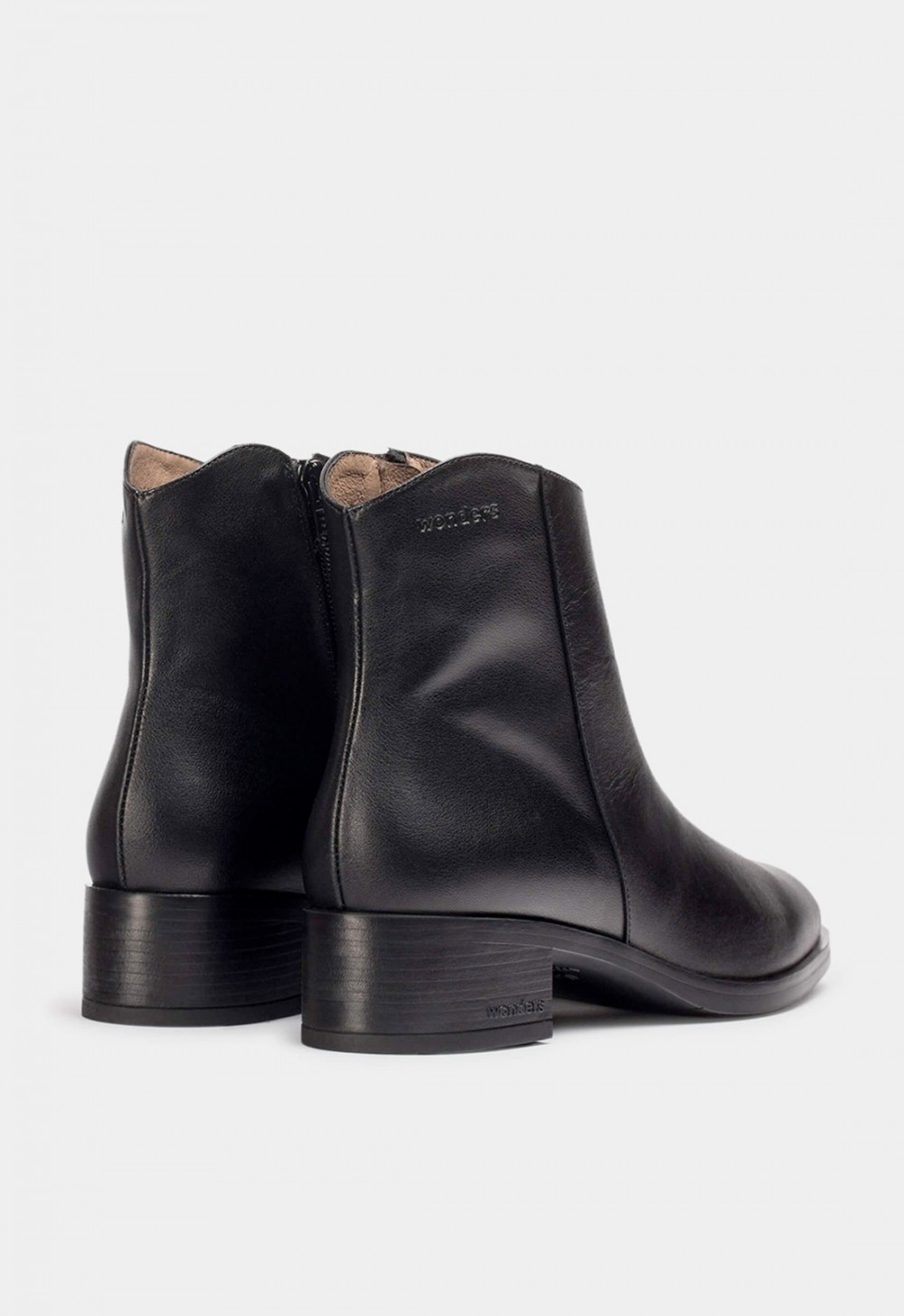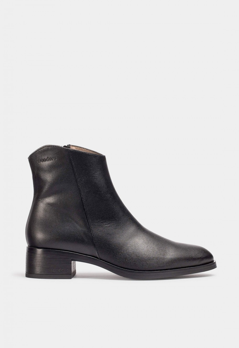Los Wonders BONJOUR 01 Negros reinterpretan el minimalismo contemporáneo con un diseño atemporal y depurado que se adapta a cualquier ocasión. Fabricados en piel lisa negra de alta calidad, estos botines de mujer destacan por su silueta de caña baja, puntera redondeada y líneas limpias que refuerzan su elegancia esencial.