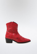 Botín de Mujer en color Rojo, fabricado en Piel con Tacón Medio y una altura de 4 cm.