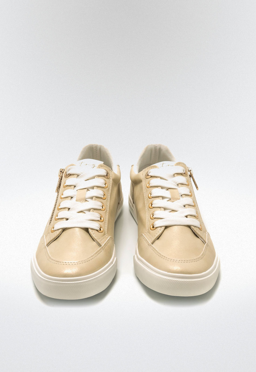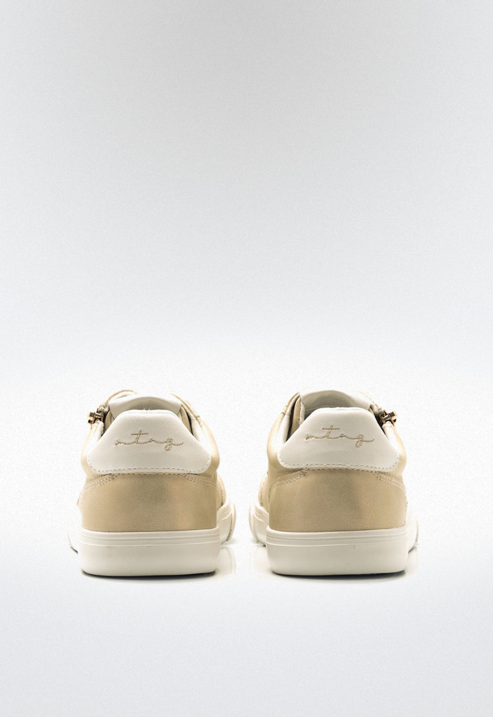 Zapatilla deportiva Aria mtng para chica. Diseñadas en color champagne con una cremallera funcional en el lateral de la zapatilla. Firma de la marca en el cuello de la zapatilla. Su horma redondeada proporcionará un extra de comodidad. Serán perfectas para una noche con amigas.