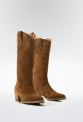 Bota Cowboy de tacón Teo mtng para chica, diseñada en piel de serraje color avellana. Bordado western en la parte inferior de la caña. Su horma se estrecha gradualmente hacia la parte delantera, creando una forma puntiaguda. Como detalle incluye una pequeña tachuela con el logo de la marca. Un modelo original para llevar en tu día a día esta temporada.