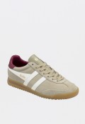 Confeccionadas en serraje suave en color beige, presentan franjas laterales en blanco que refuerzan su aire retro y un contraste elegante en el talón en tono burdeos. La suela de goma estilo gum aporta resistencia, flexibilidad y un acabado vintage perfecto para el día a día.