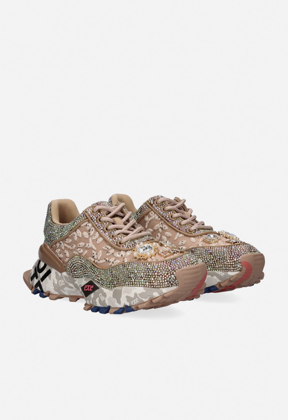 Las zapatillas Exé 2025-20 en color beige combinan elegancia y actitud urbana con un espectacular acabado de brillantes que capta todas las miradas. Su diseño sofisticado mantiene la esencia effortless de la marca, pero con un toque glam que transforma cualquier outfit en tendencia. El equilibrio entre texturas, volumen y detalles joya aporta personalidad y carácter, mientras que su interior cómodo las convierte en el aliado perfecto para el día a día. Ideales para mujeres que buscan sneakers diferentes, femeninas y con un brillo irresistible.