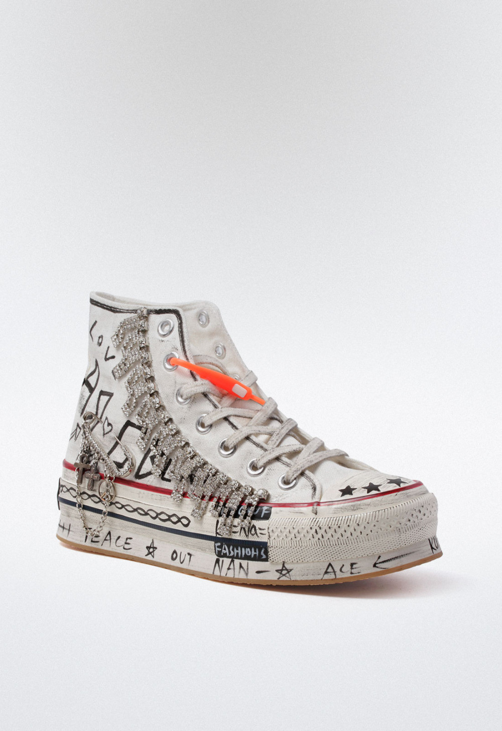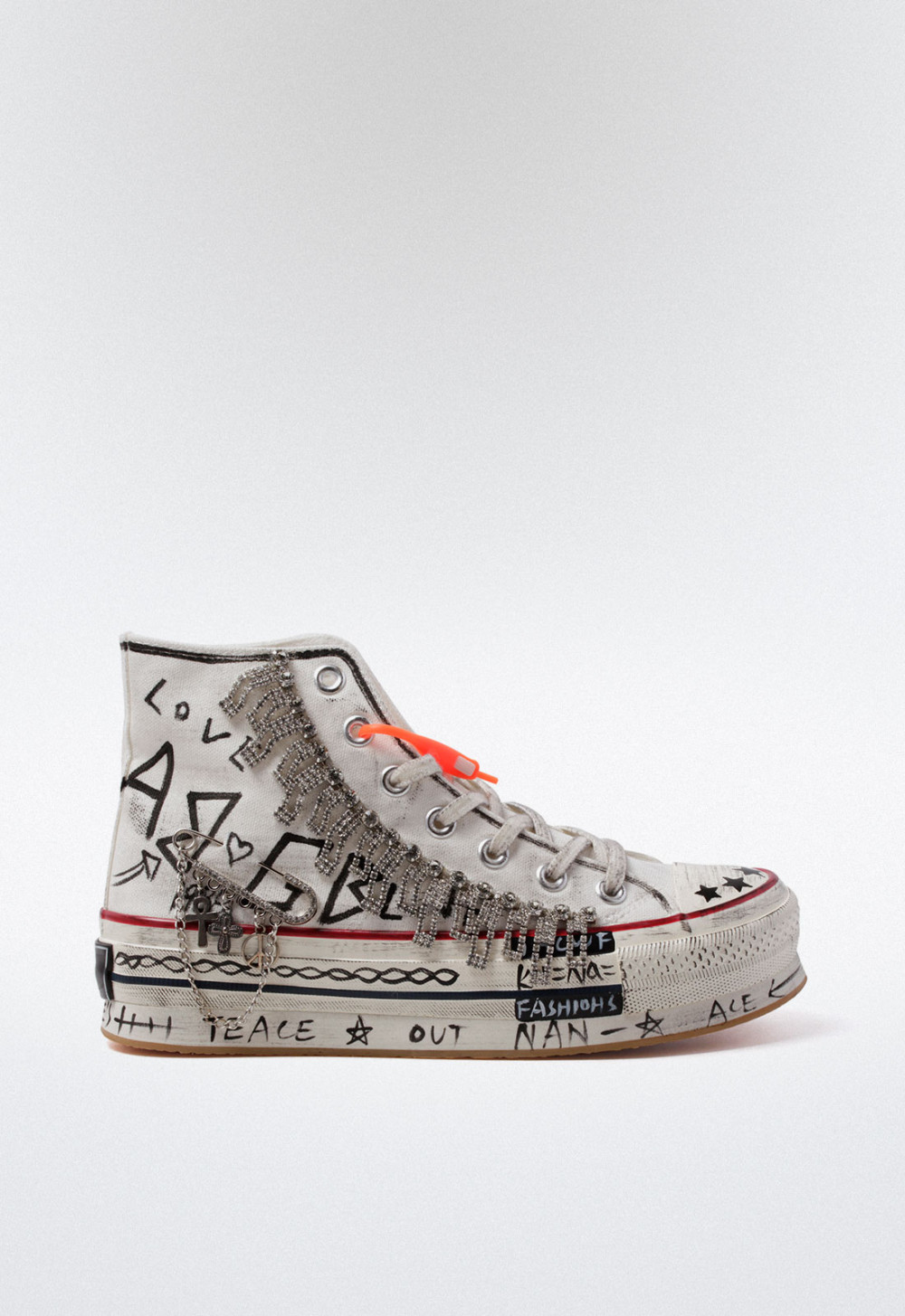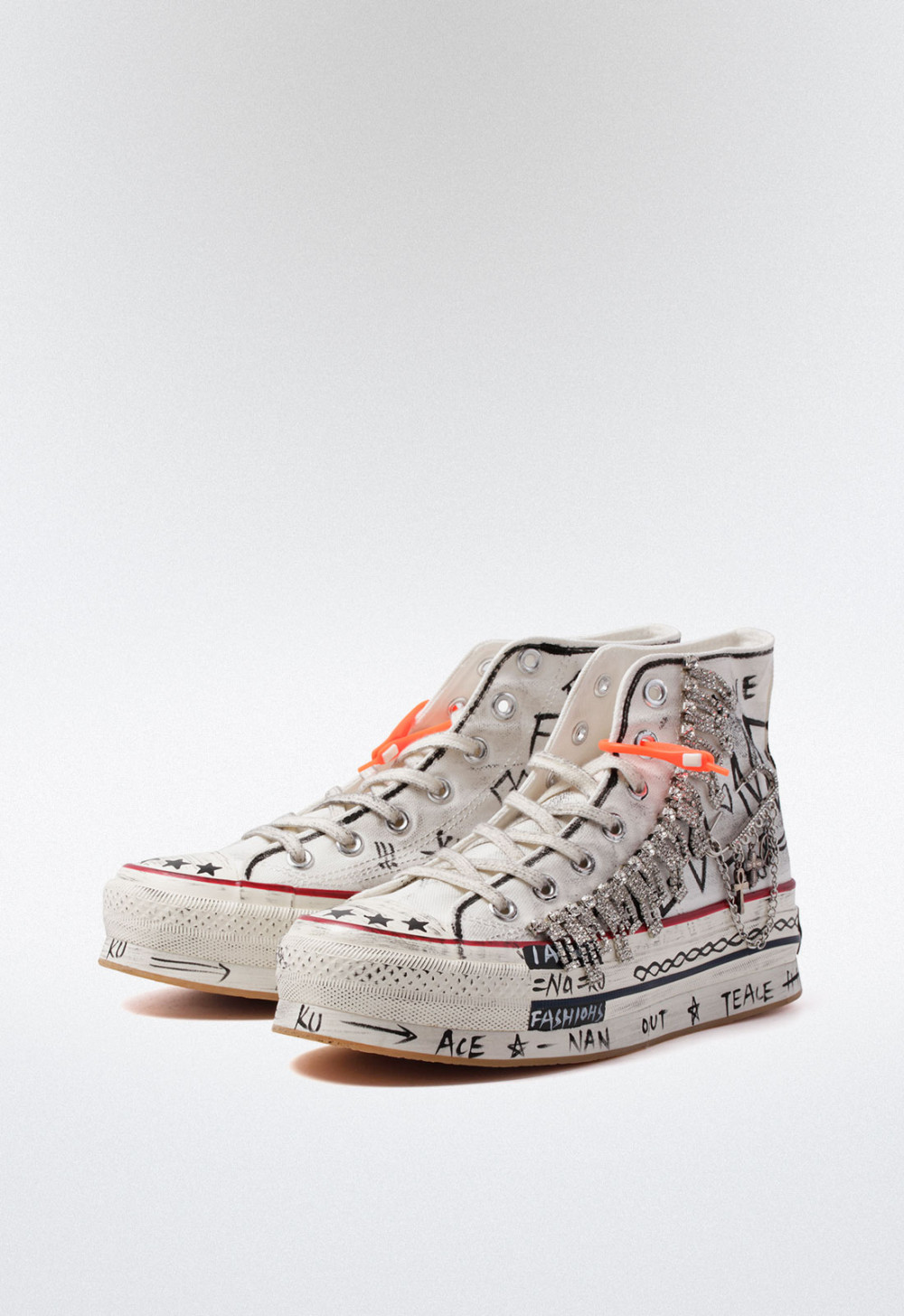 Deportivo de Mujer en color Blanco, fabricado en Textil con Plano plataforma y una altura de 4 cm.
