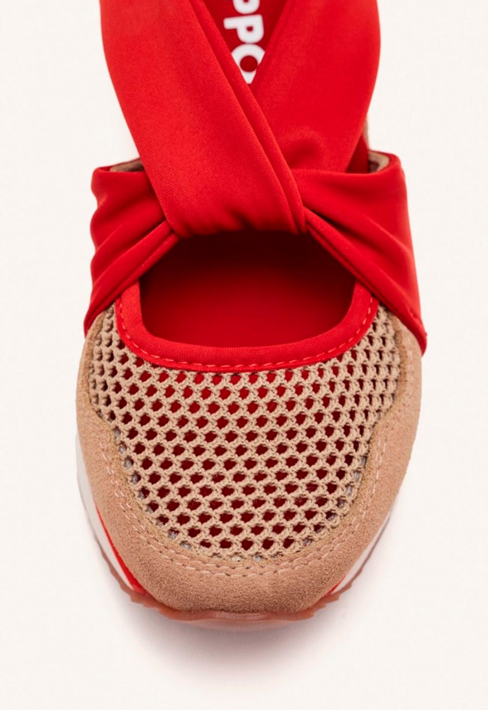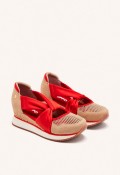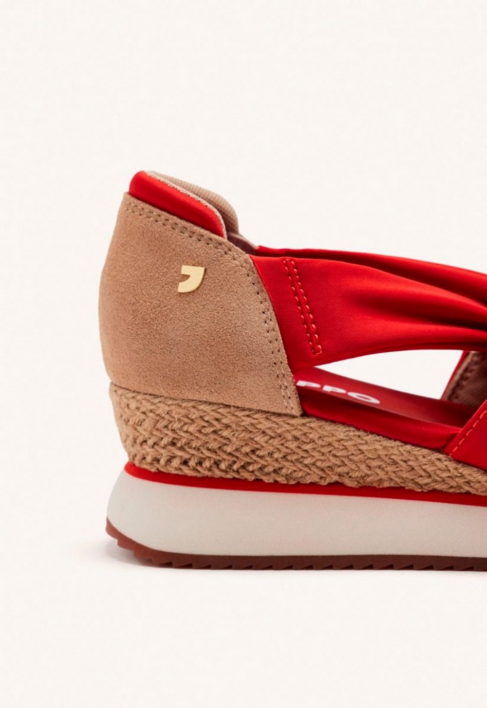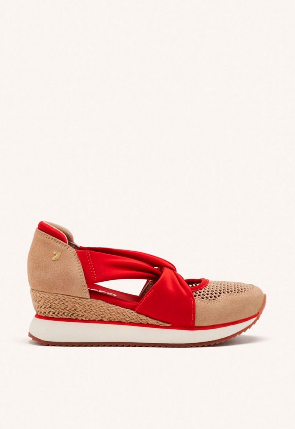 Esta sandalia deportiva abierta de mujer combina piel y rafia en una silueta versátil, fresca y con carácter. Su cuña de 5,5 cm en acabado natural y la plantilla acolchada garantizan confort con estilo, ideal para el día a día o escapadas estivales.