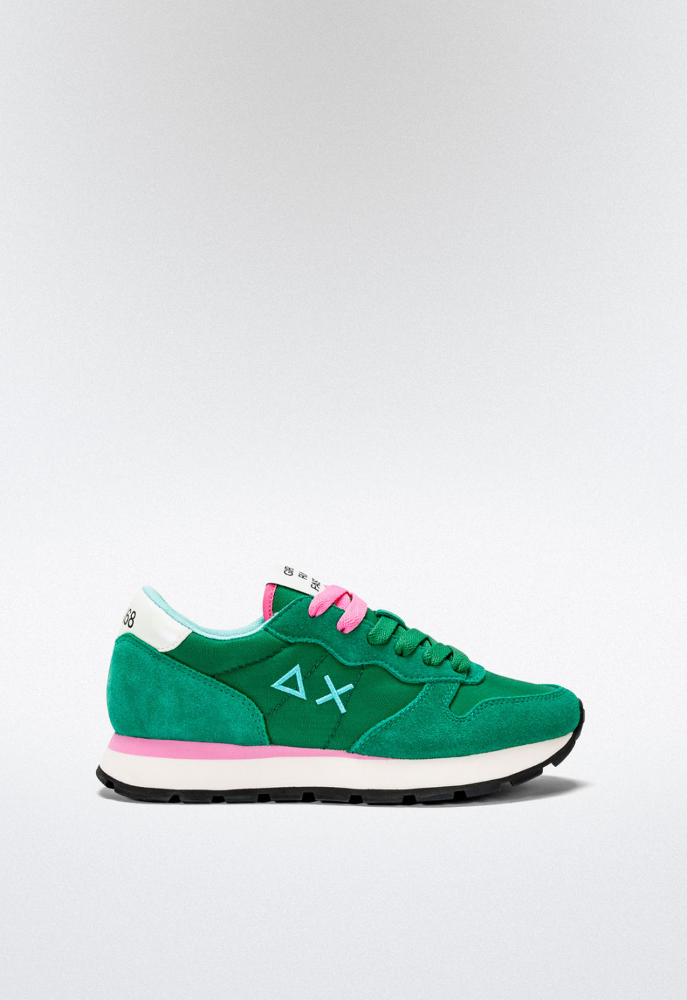 Deportivo de Mujer en color Verde, fabricado en Piel y Textil, con piso Plano.