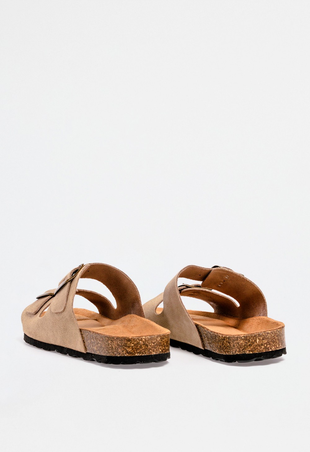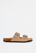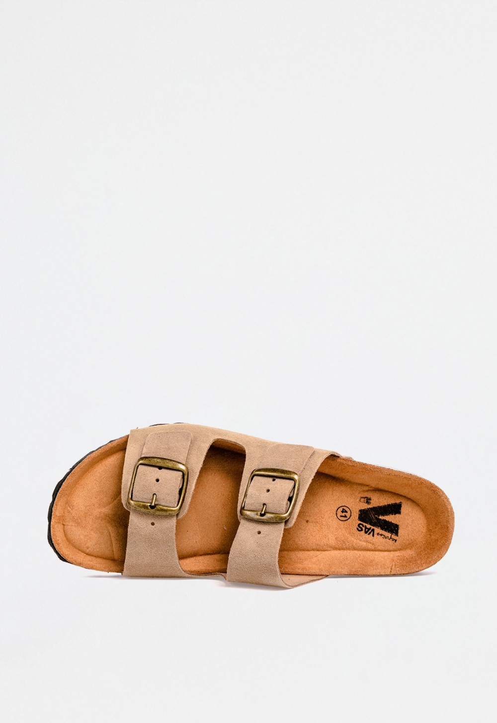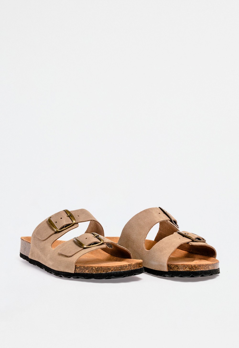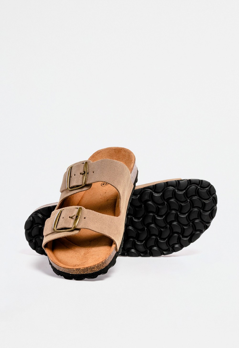 Esta sandalia bio para hombre está fabricada en piel de alta calidad en color tostado. Incorpora dos correas ajustables con hebillas metálicas doradas que permiten un ajuste personalizado y seguro. Su plantilla anatómica y suela flexible garantizan confort incluso durante un uso prolongado.