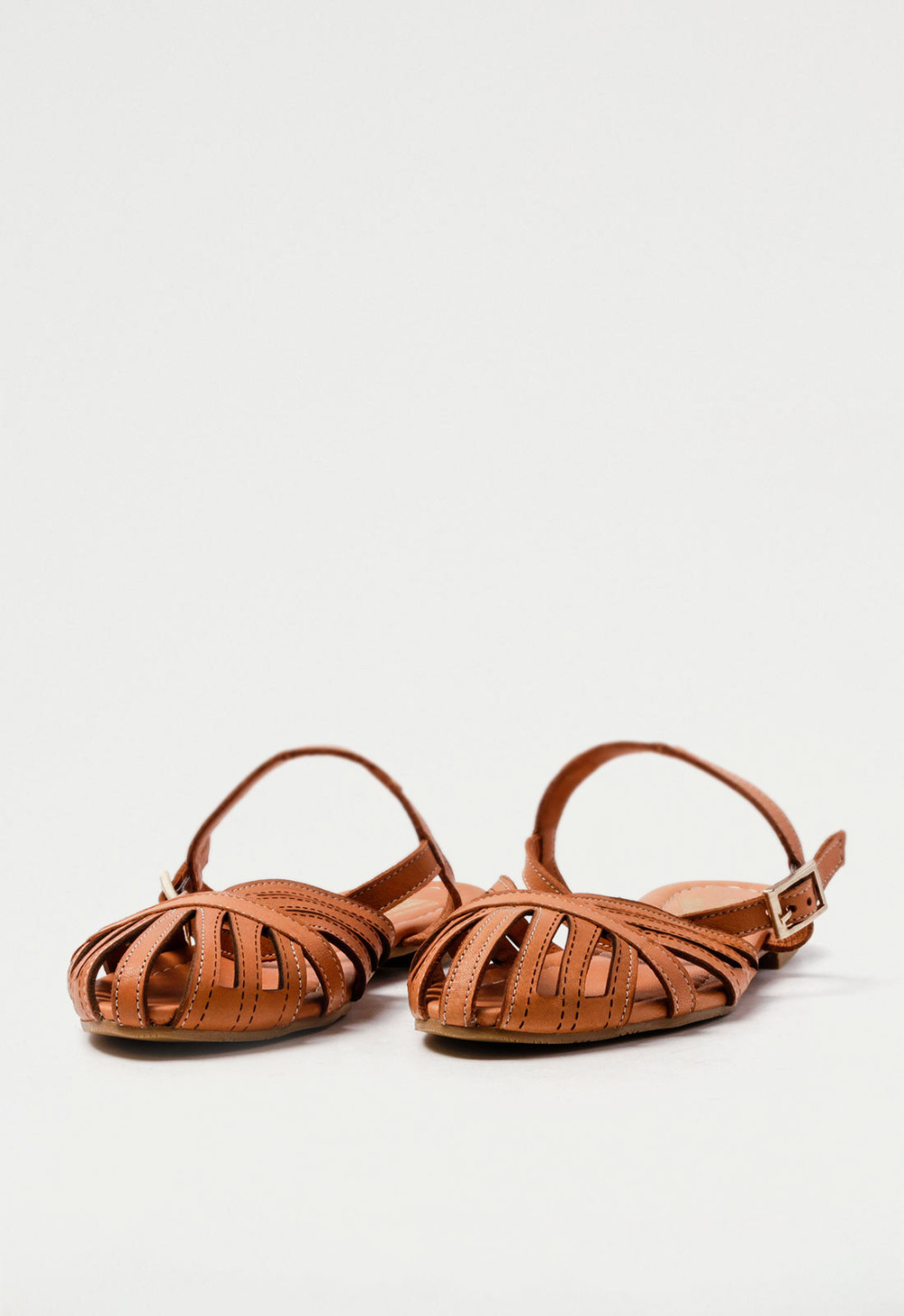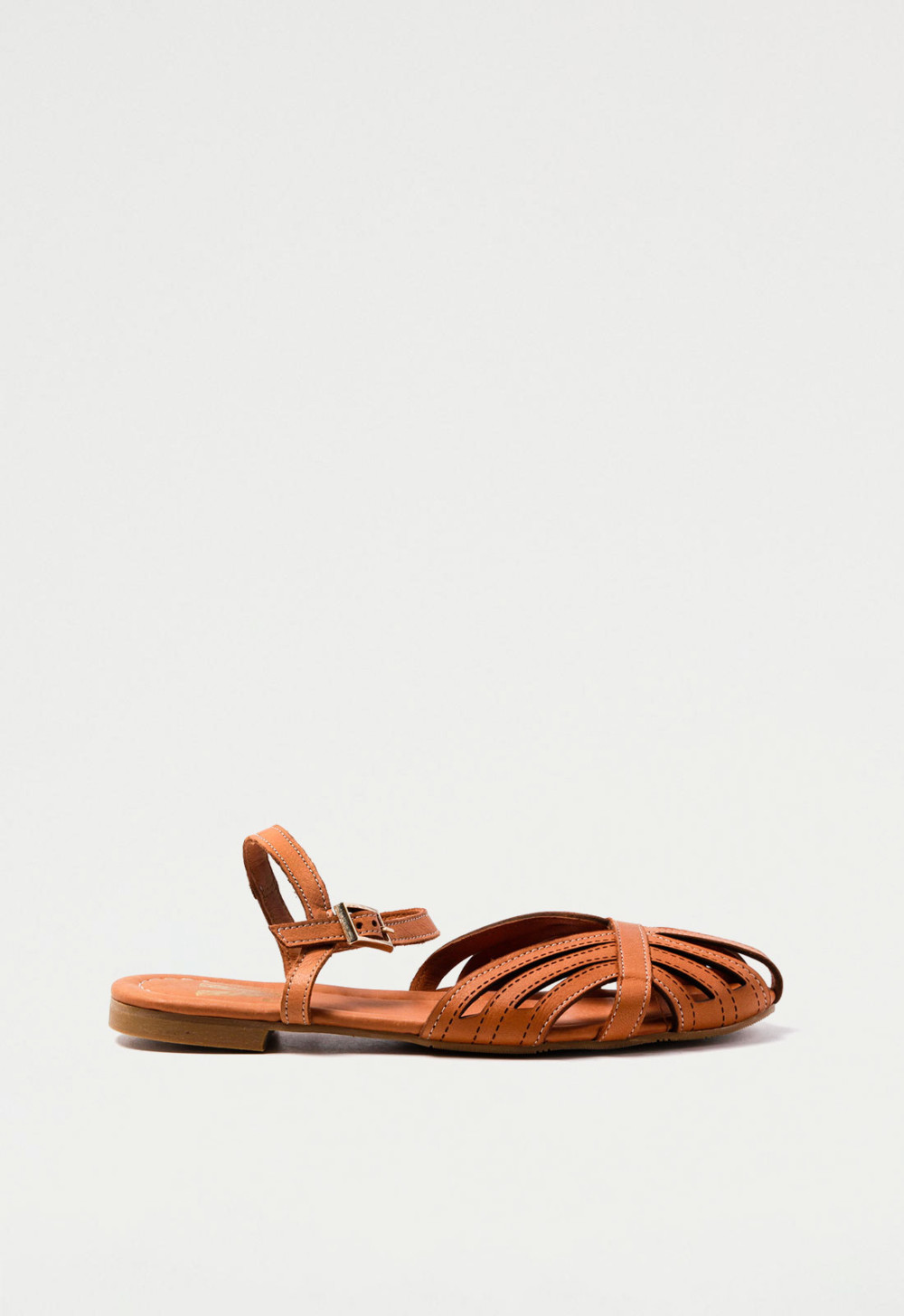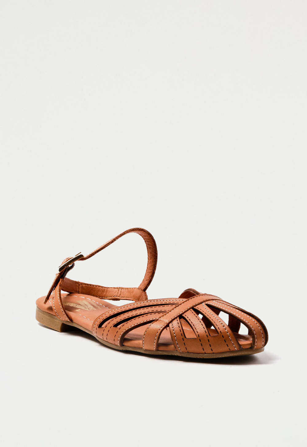 Sandalia de Mujer en color Cuero, fabricado en Piel con Plano y una altura de 1 cm.