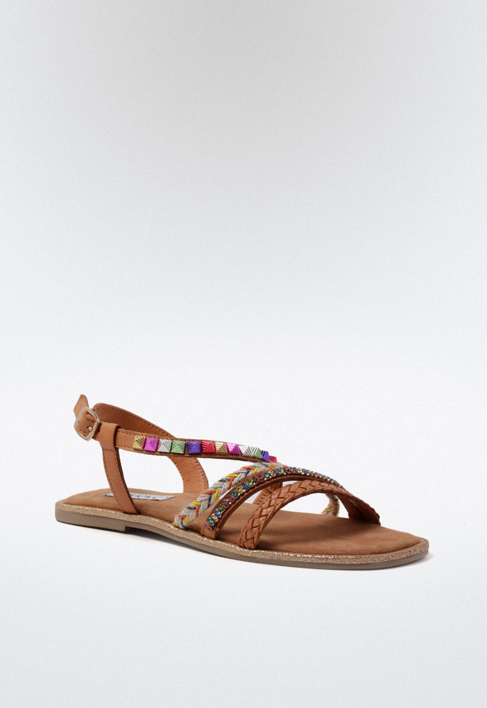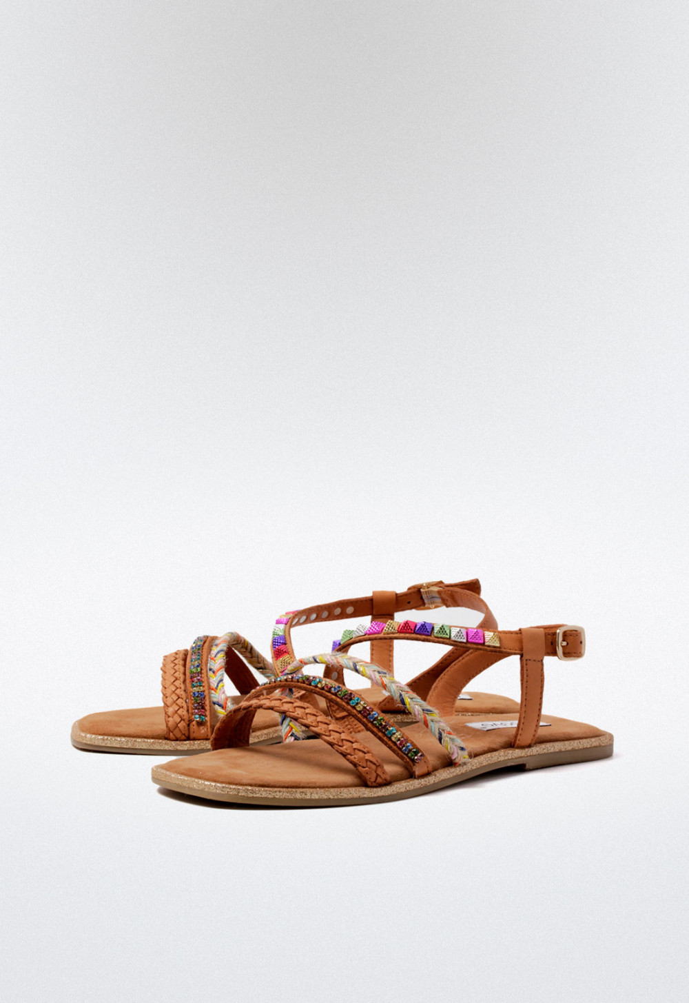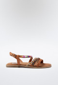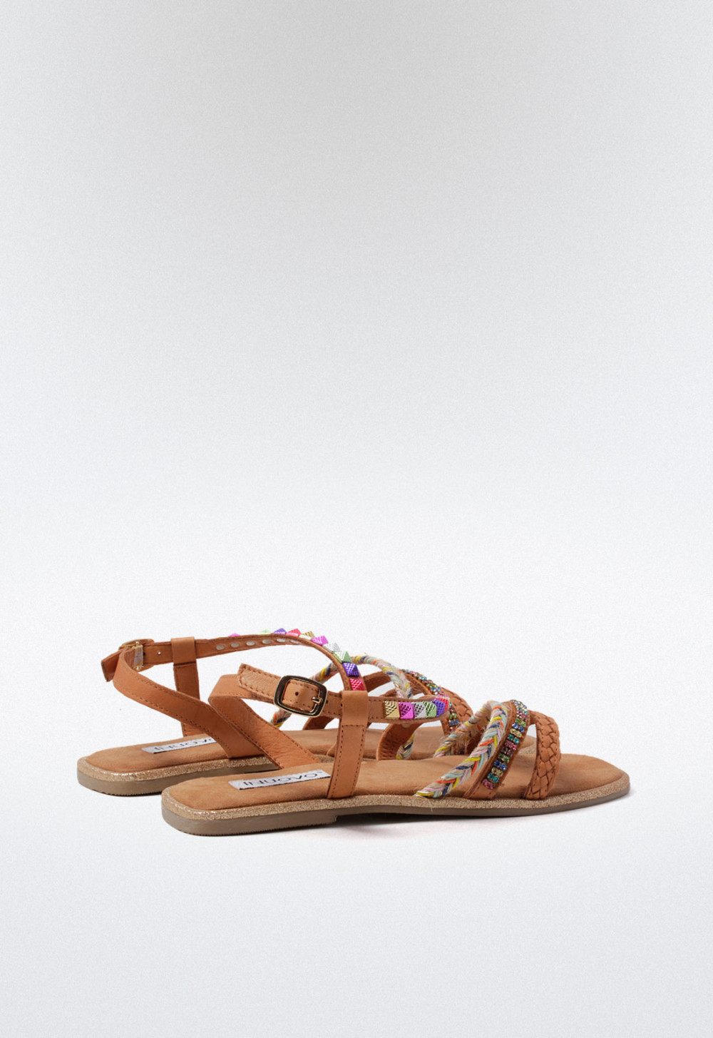 Sandalia de Mujer en color Cuero, fabricado en Piel, con piso Plano.