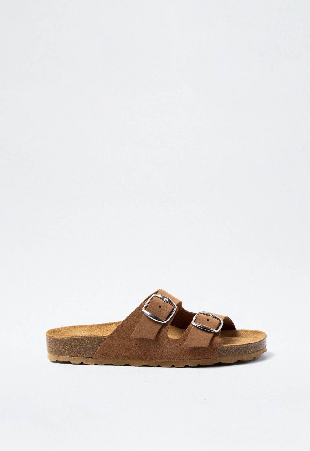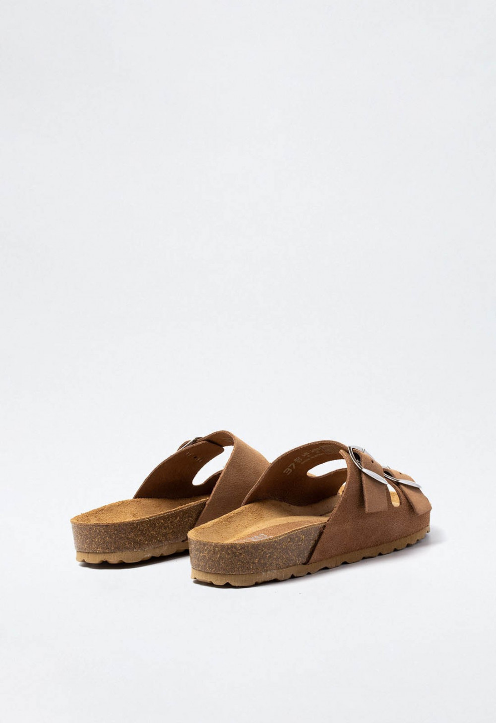 Sandalia de Mujer en color Cuero, fabricado en Piel con Plano y una altura de 3 cm.