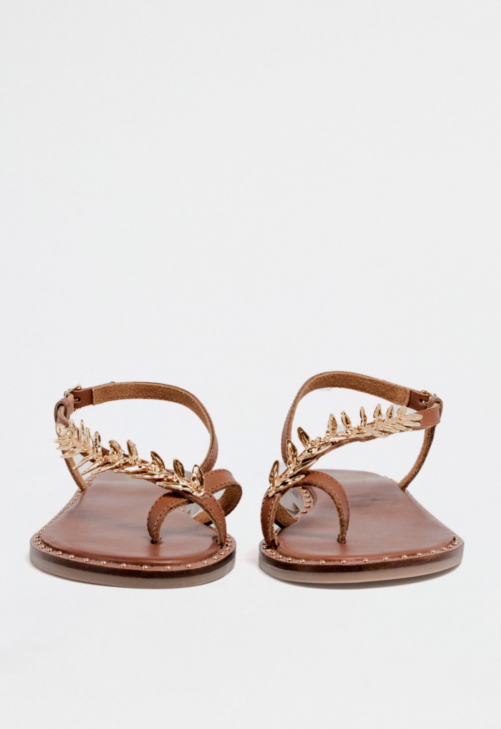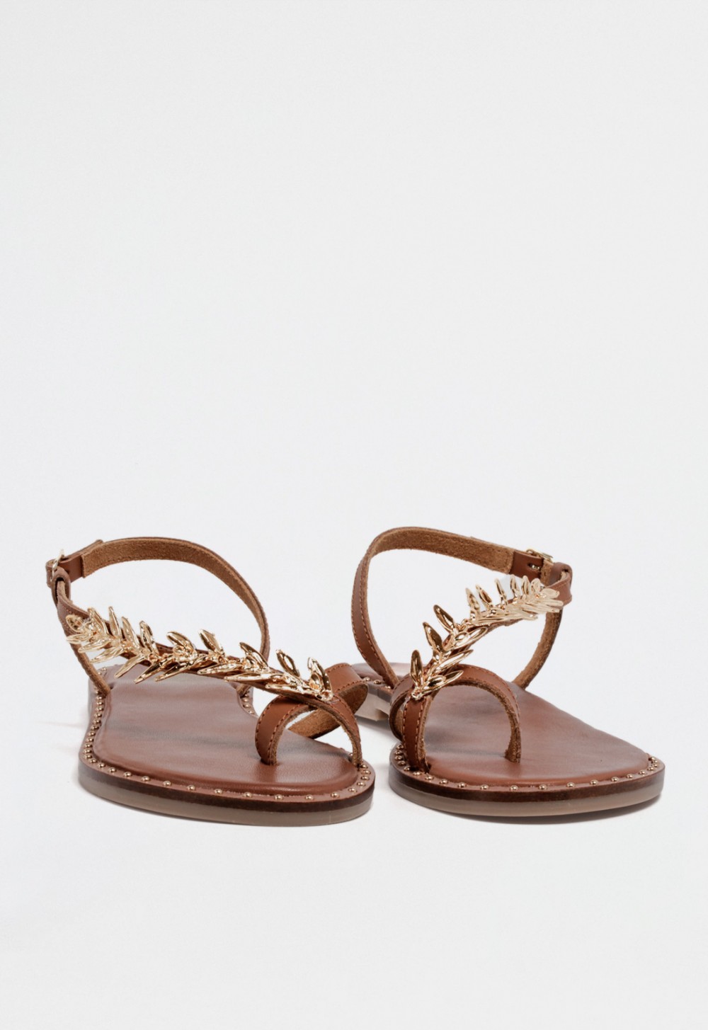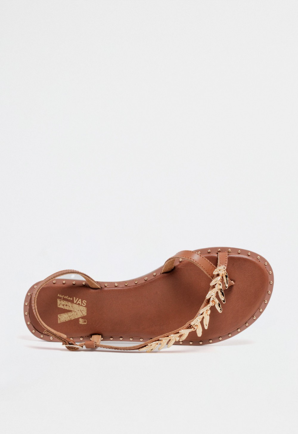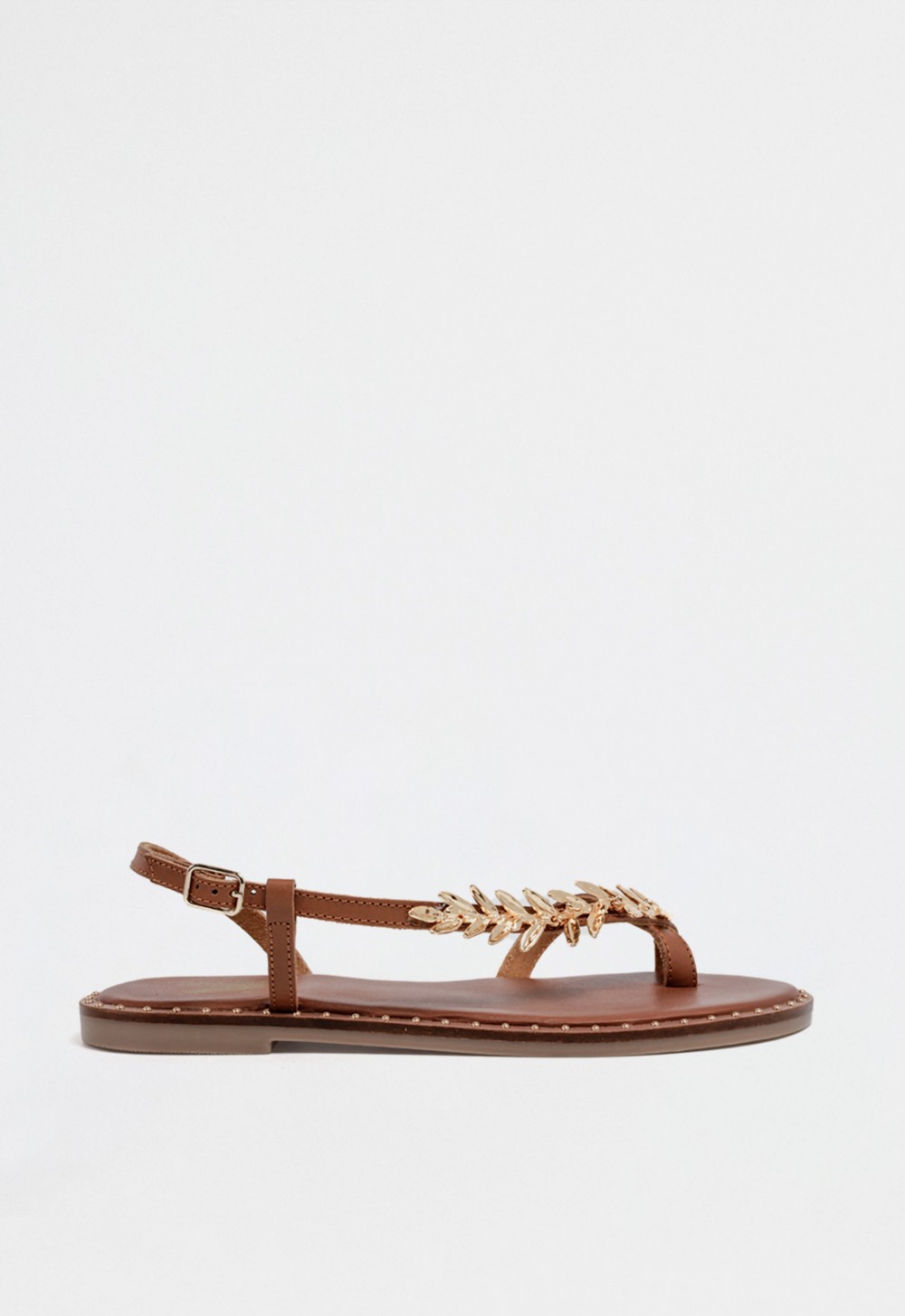 Suela decorada con pequeñas tachas doradas para un acabado refinado