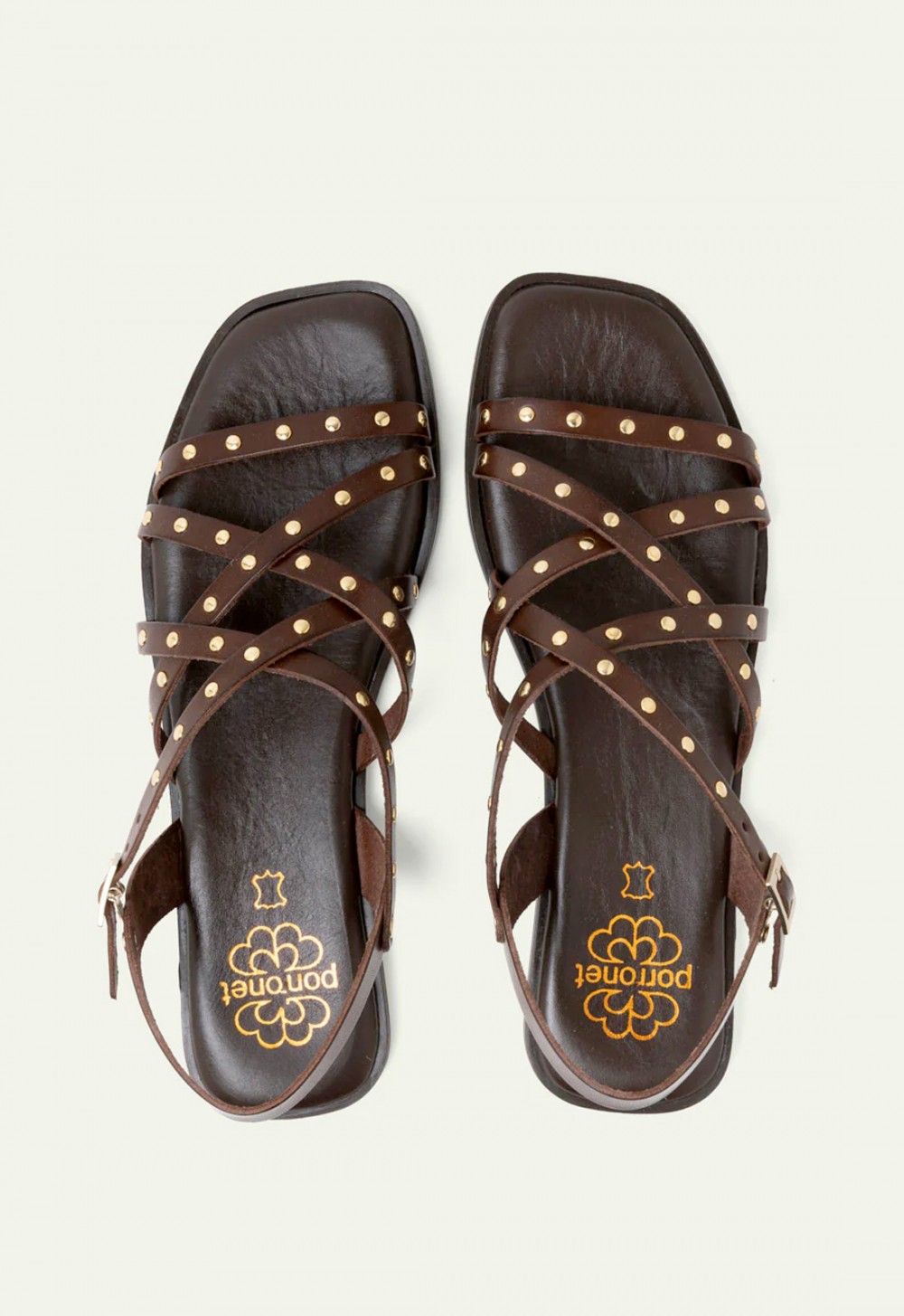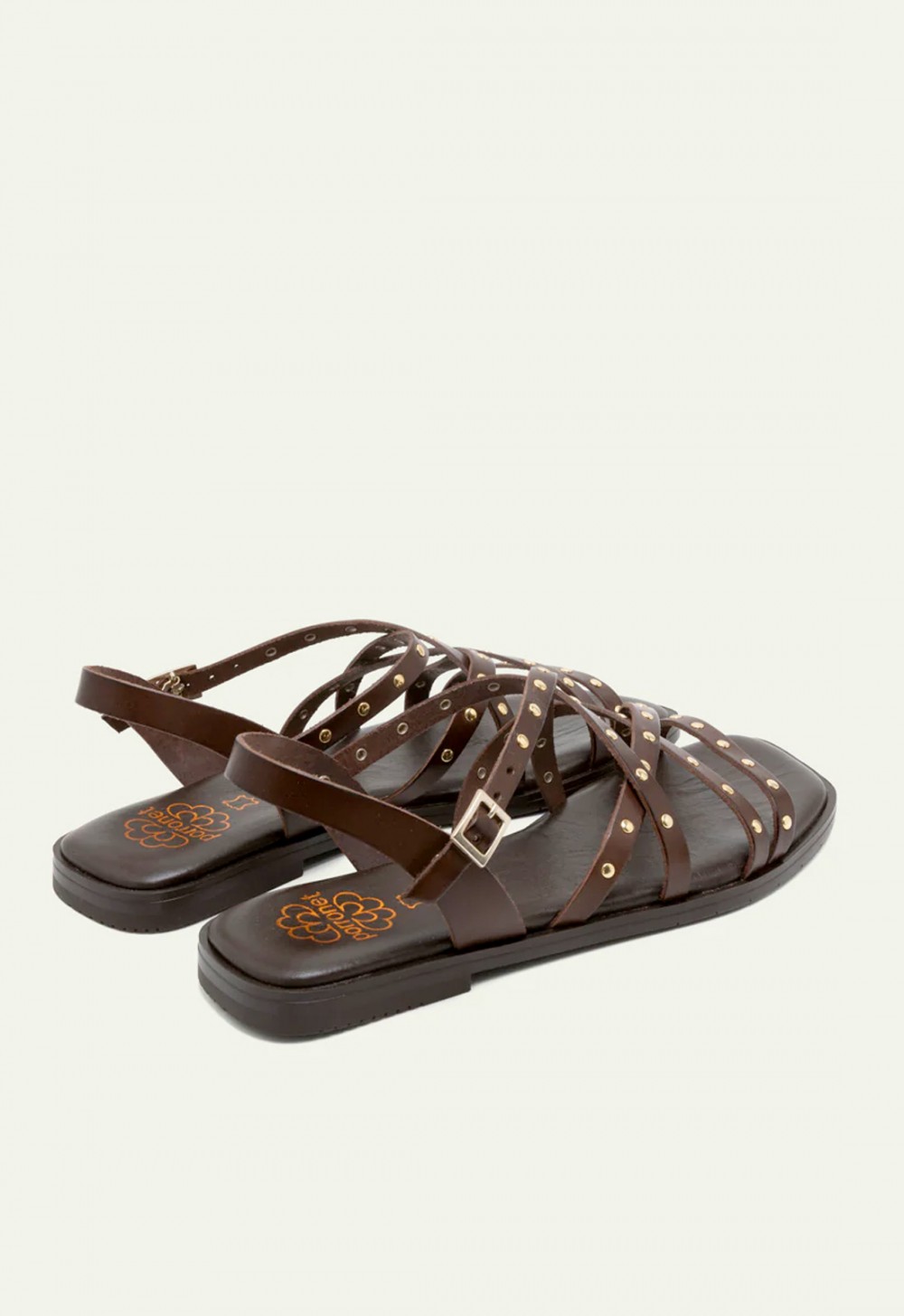 Las sandalias planas Porronet Blair en color moka son el equilibrio perfecto entre tendencia y comodidad. Fabricadas artesanalmente en España en piel de alta calidad, destacan por sus tiras cruzadas con tachuelas doradas que aportan un toque boho chic irresistible. Su plantilla acolchada garantiza confort durante todo el día, mientras que el cierre con hebilla asegura una sujeción perfecta. La suela antideslizante aporta estabilidad en cada paso. Ideales para elevar tus looks de verano con estilo natural, auténtico y sofisticado.