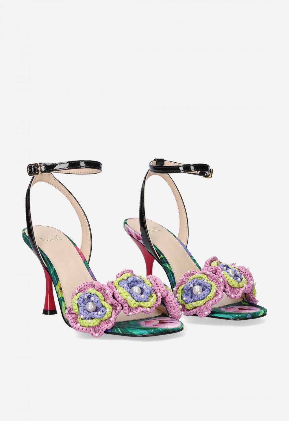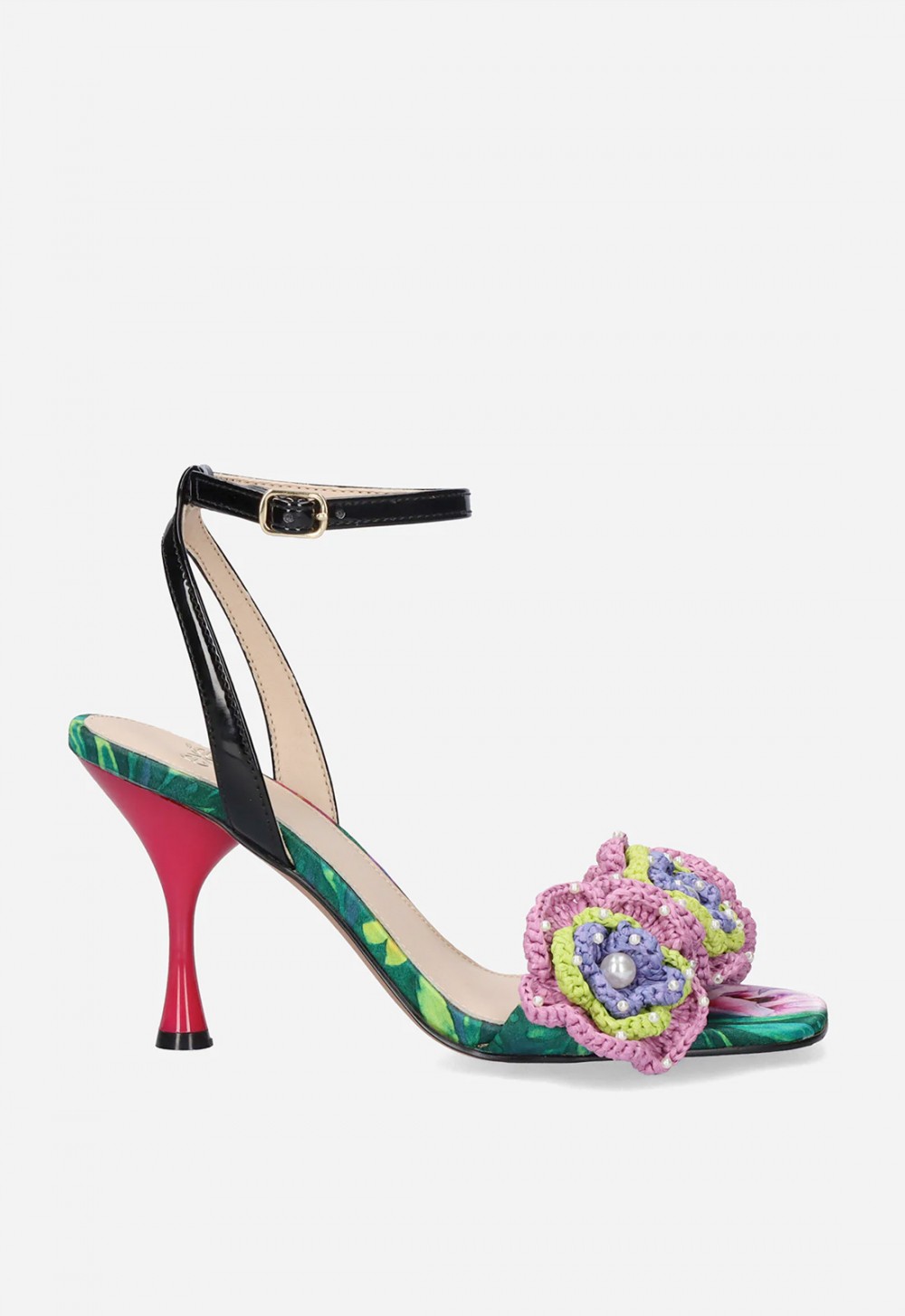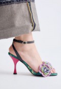 La sandalia de tacón EXE Anita-116 Flower Green BLK combina tonos verdes y negros con una decoración floral de inspiración artesanal que convierte cada paso en una declaración de estilo. Su diseño femenino, sofisticado y contemporáneo es perfecto para invitadas, eventos o looks de noche con un punto diferente. La tira al tobillo con hebilla aporta sujeción y estiliza la silueta, mientras que la plantilla de cuero mejora la comodidad. Una sandalia de vestir con personalidad para mujeres que quieren brillar con elegancia y actitud fashion.
