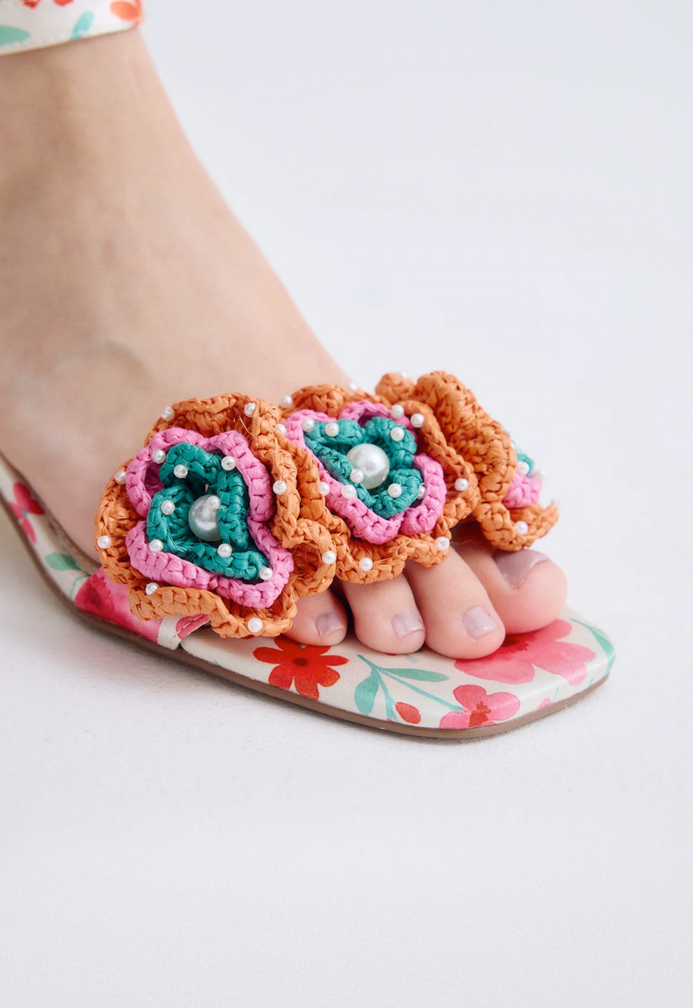 Detalle de flores en el empeine – acabado protagonista con aire artesanal