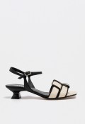 Sandalia de tacón bajo para mujer con contraste gráfico