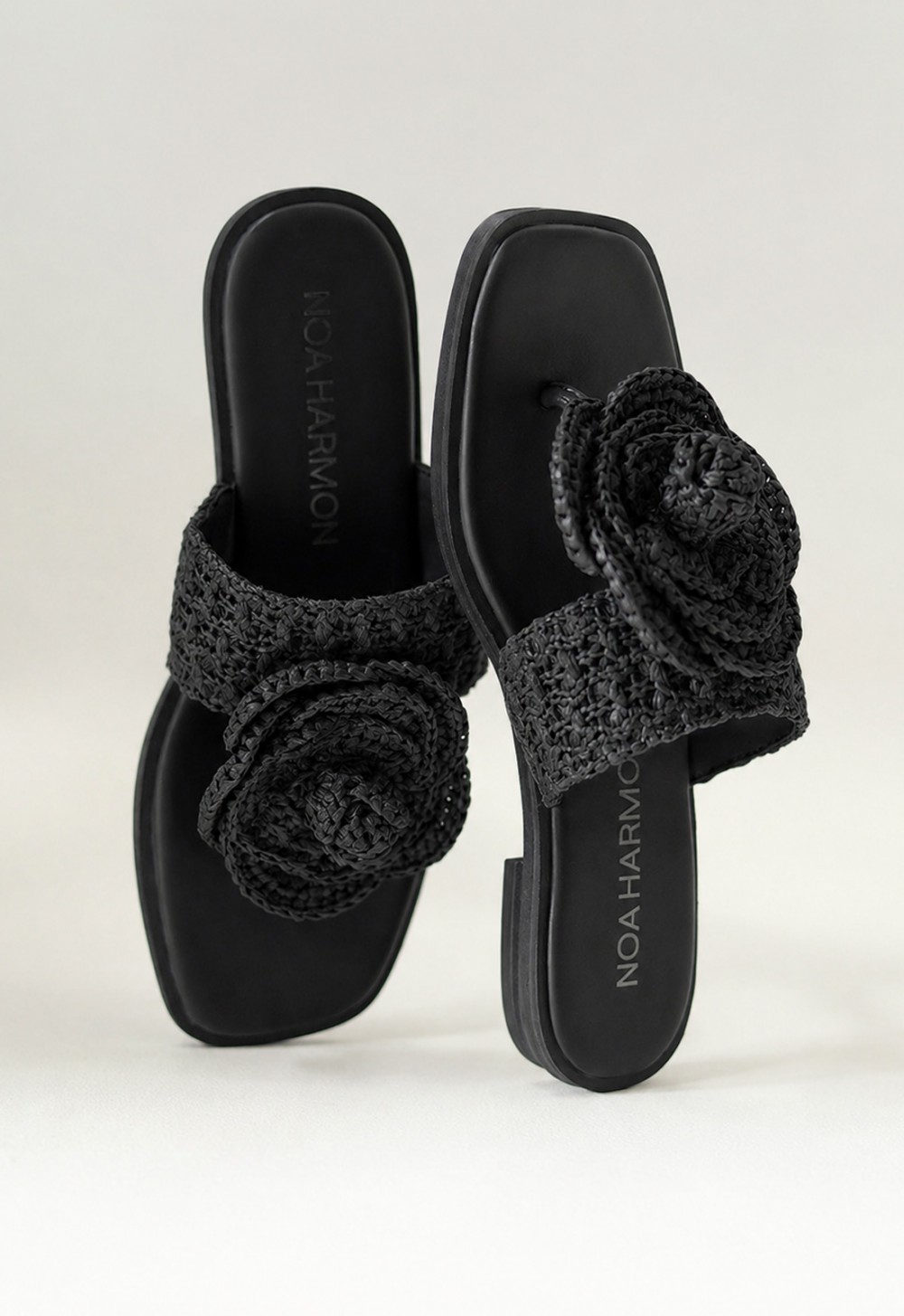 La sandalia plana de mujer Noa Harmon Acacia en color negro combina comodidad, estilo artesanal y un punto sofisticado perfecto para el verano. Su diseño tipo esclava con adorno floral de rafia aporta personalidad y un aire chic muy fácil de llevar. La plantilla y el forro interior en piel favorecen una pisada agradable, mientras su color negro la convierte en una opción versátil para looks casuales, vestidos fluidos o planes especiales al atardecer.