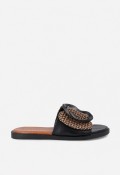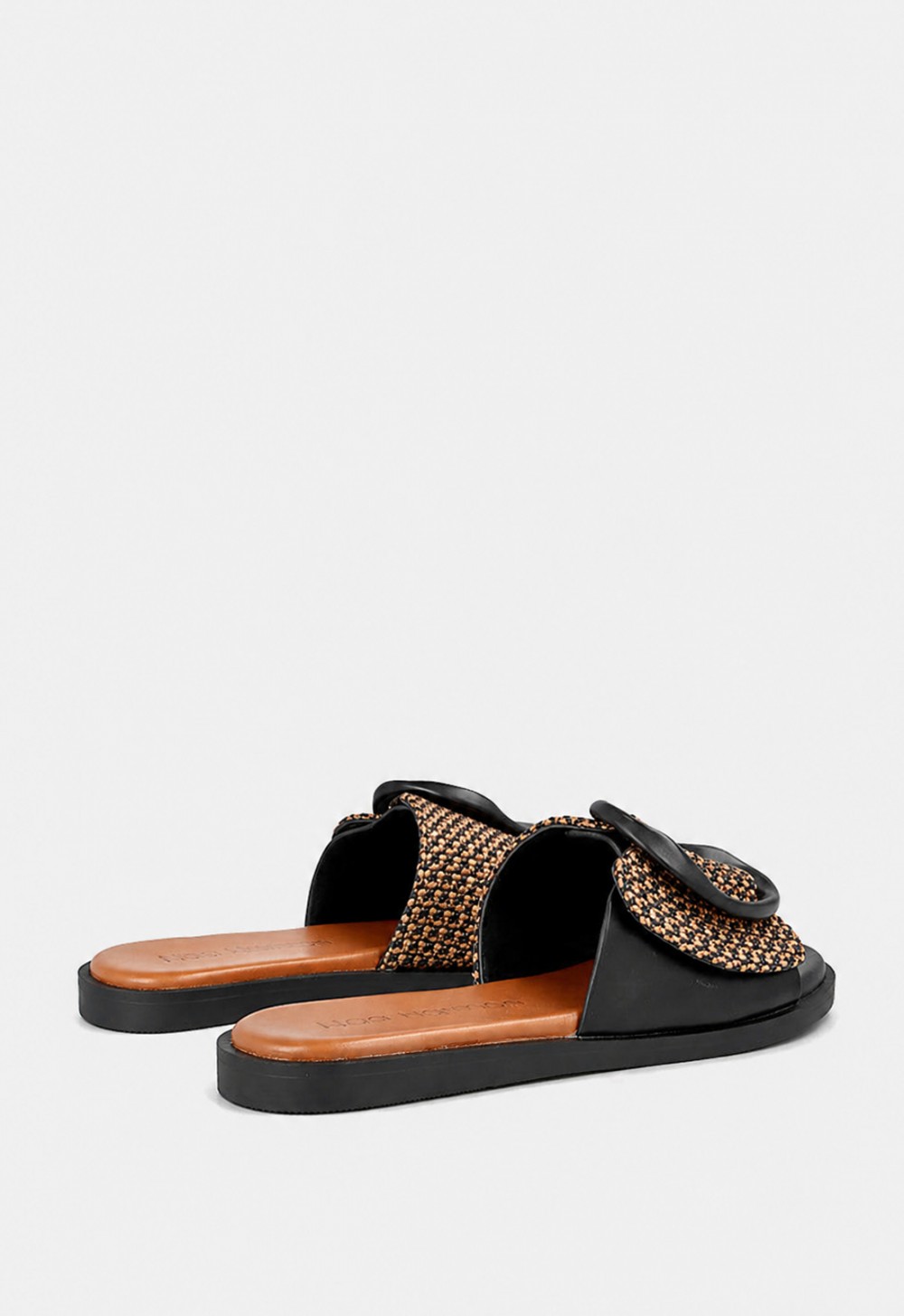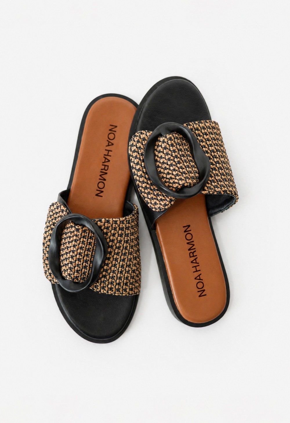 La sandalia plana de mujer Noa Harmon GEA es un básico sofisticado para elevar tus looks de verano con comodidad. Su diseño tipo pala combina textura trenzada, base negra y hebilla ovalada decorativa en el empeine, creando un estilo moderno y muy fácil de llevar. Incorpora plantilla acolchada de piel para una pisada suave y suela antideslizante, ideal para disfrutar del día a día con seguridad, frescura y ese toque chic que transforma cualquier outfit casual.