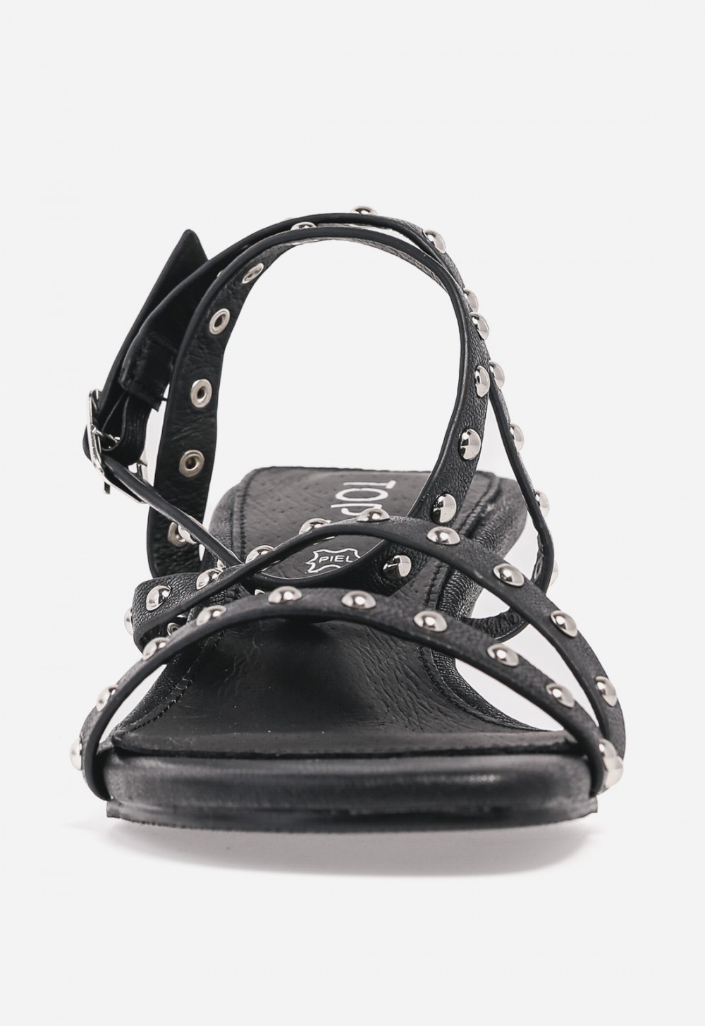 La sandalia SF1630 de TOP 3 es una apuesta femenina y actual para elevar cualquier look con un toque sofisticado y en tendencia. Fabricada en piel, destaca por su diseño de tiras finas con tachuelas metálicas que aportan carácter y un aire fashion muy favorecedor. La pulsera al tobillo estiliza la pierna y mejora la sujeción, mientras su silueta ligera y abierta la convierte en una opción ideal para cenas, eventos, celebraciones o estilismos de noche. Un modelo negro versátil, elegante y con personalidad para mujeres que buscan destacar sin renunciar al estilo.