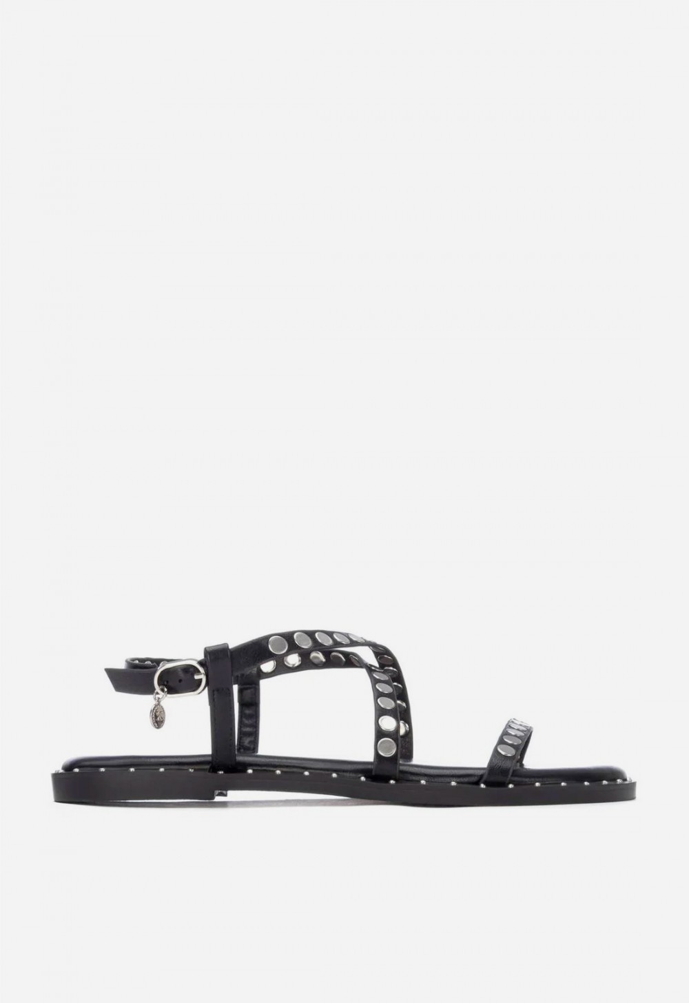 Las sandalias planas Xti 14535702 en color negro son el básico perfecto para un estilo actual y versátil. Su diseño con tiras finas decoradas con tachuelas metálicas aporta un toque moderno que eleva cualquier look. Incorporan cierre con hebilla en el tobillo para un ajuste cómodo y seguro. Su ligereza y suela antideslizante las convierten en una opción ideal para el día a día durante los meses de calor. Un modelo cómodo, fácil de combinar y con certificado vegano PETA, perfecto para looks urbanos y casuales.