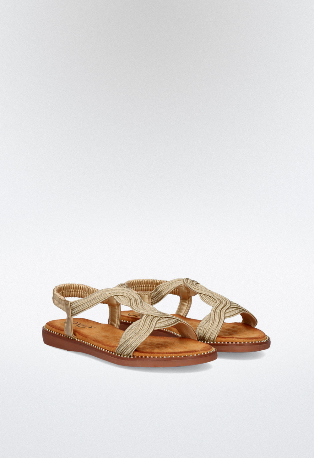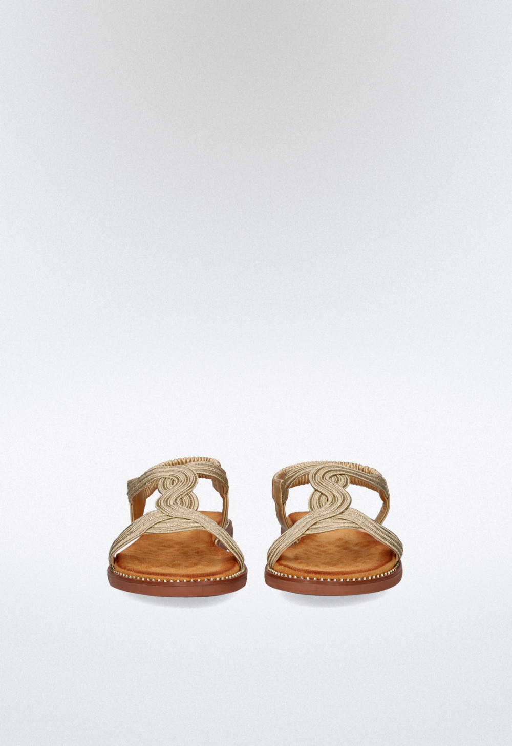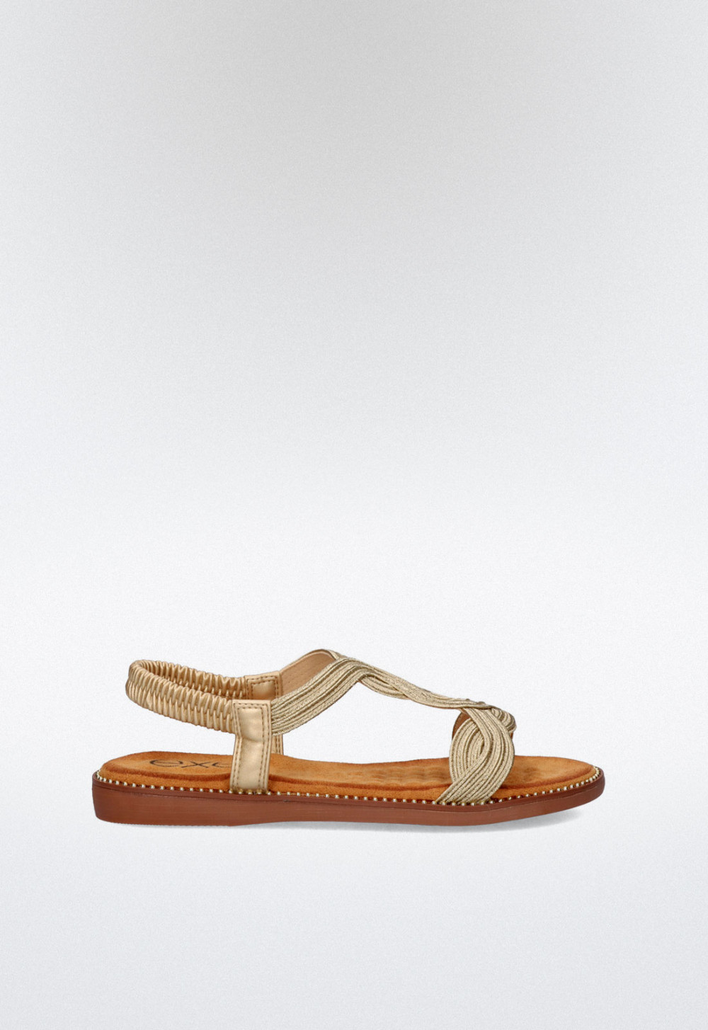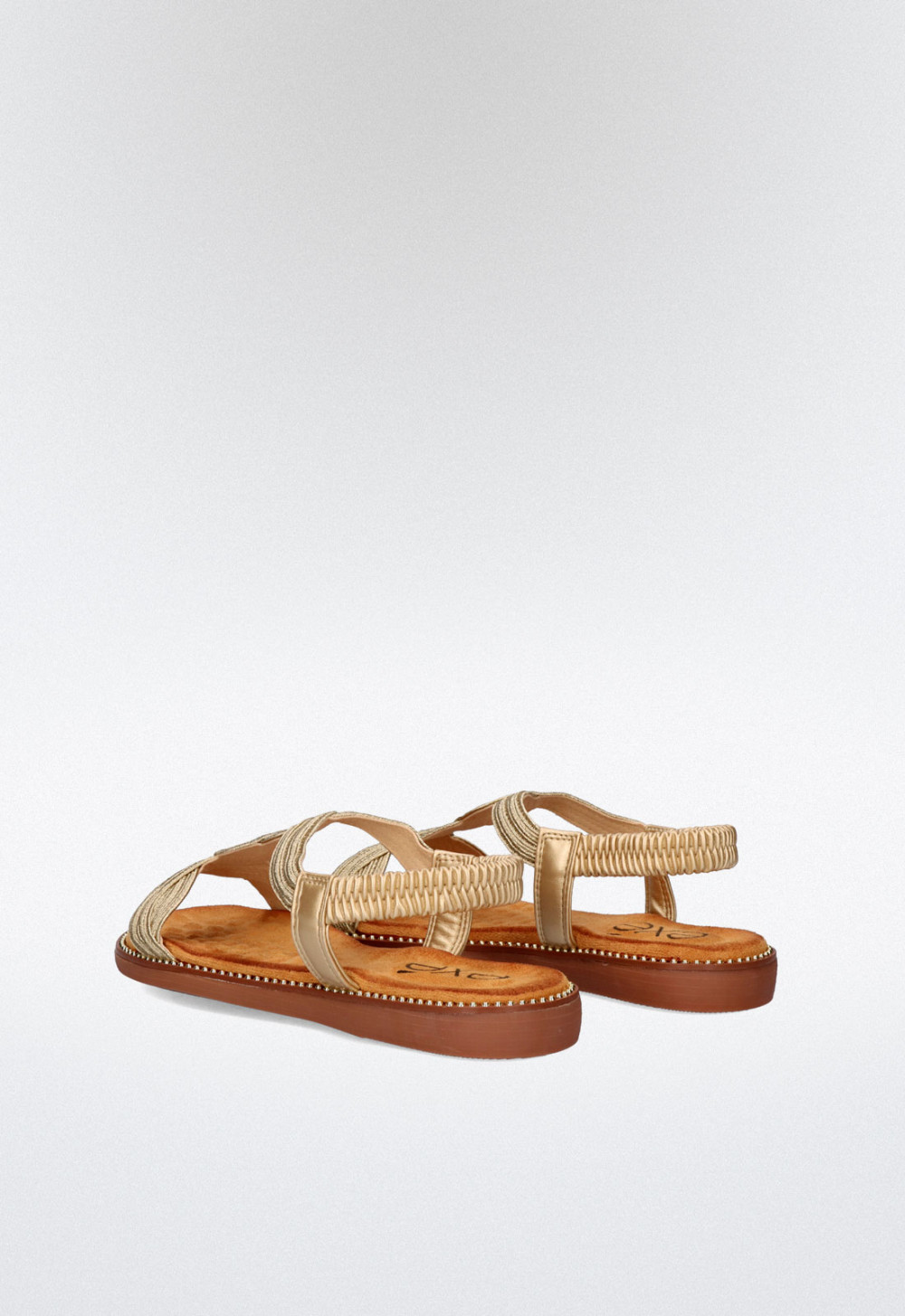 Sandalia de Mujer en color Oro, fabricado en Sintético con Plano y una altura de 1 cm.