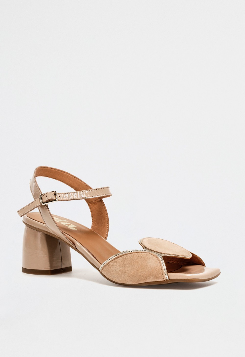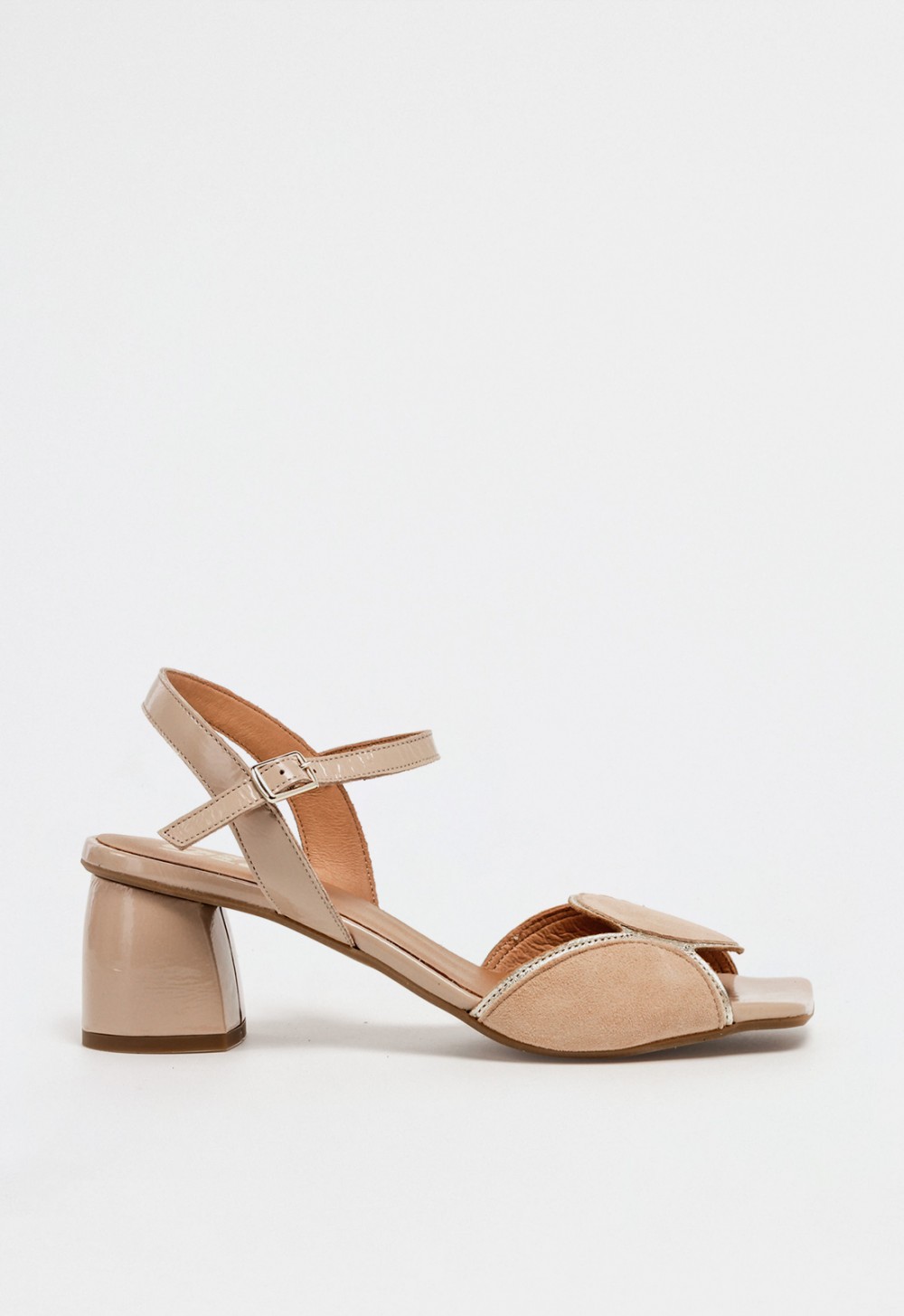 Este modelo de sandalia de mujer combina piel y ante en un refinado tono beige con detalles dorados que añaden luz y sofisticación. Su diseño incorpora una tira con hebilla al tobillo que garantiza un ajuste firme, mientras que el tacón alto y ancho proporciona altura sin renunciar a la estabilidad. La punta cuadrada aporta un toque moderno y estructurado al conjunto.
