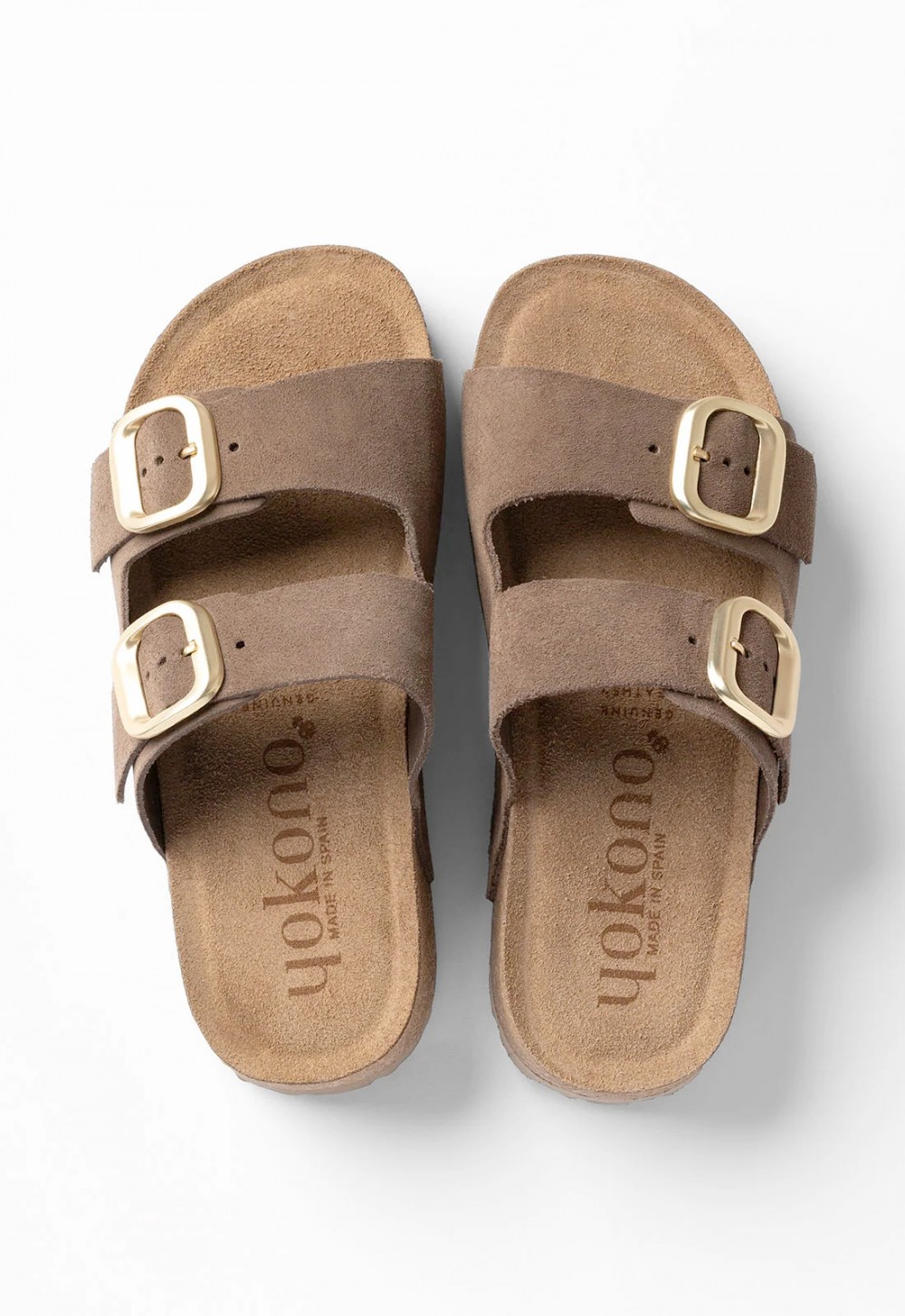 La sandalia de mujer Yokono WIWI-003 en color marrón es la opción perfecta para quienes buscan comodidad y estilo en un mismo diseño. Fabricada en piel vacuna de alta calidad, apuesta por una estética bio actual y muy versátil. Sus dos hebillas ajustables permiten adaptar la sujeción al pie, mientras que la plataforma ligera con suela de EVA aporta confort y ligereza en cada paso. Fácil de combinar con vestidos, jeans o looks relaxed, es una sandalia de fondo de armario con un aire natural, moderno y muy favorecedor para el día a día.