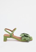 Elegancia y frescura en la sandalia de tacón bajo Eugenie de Ángel Alarcón en color verde, hecha en España.