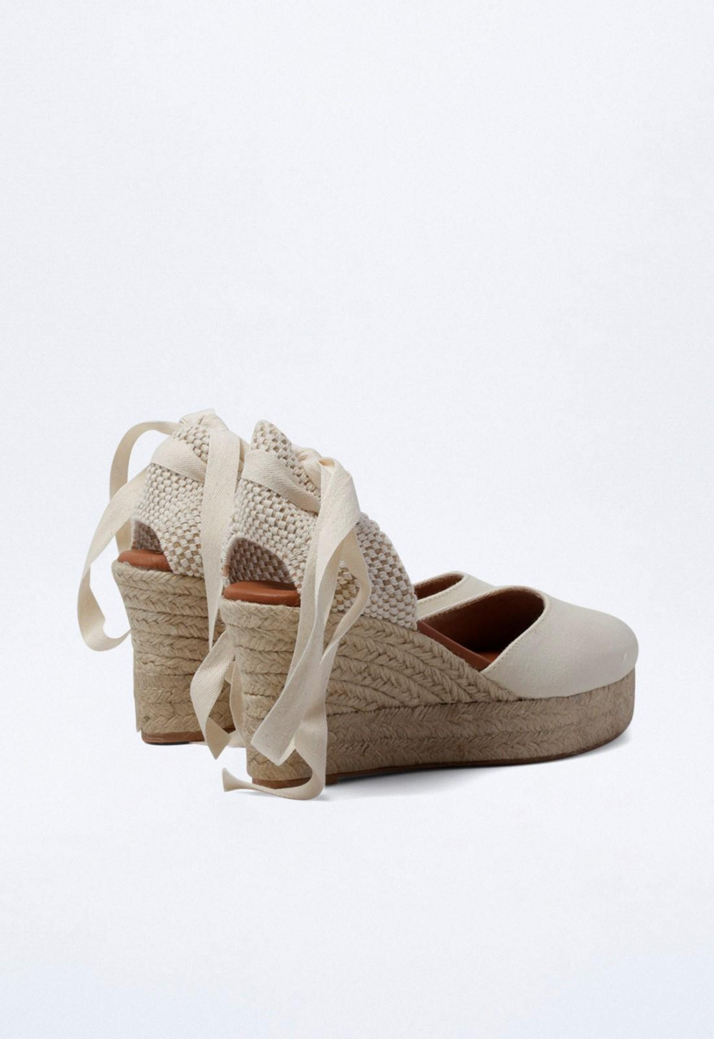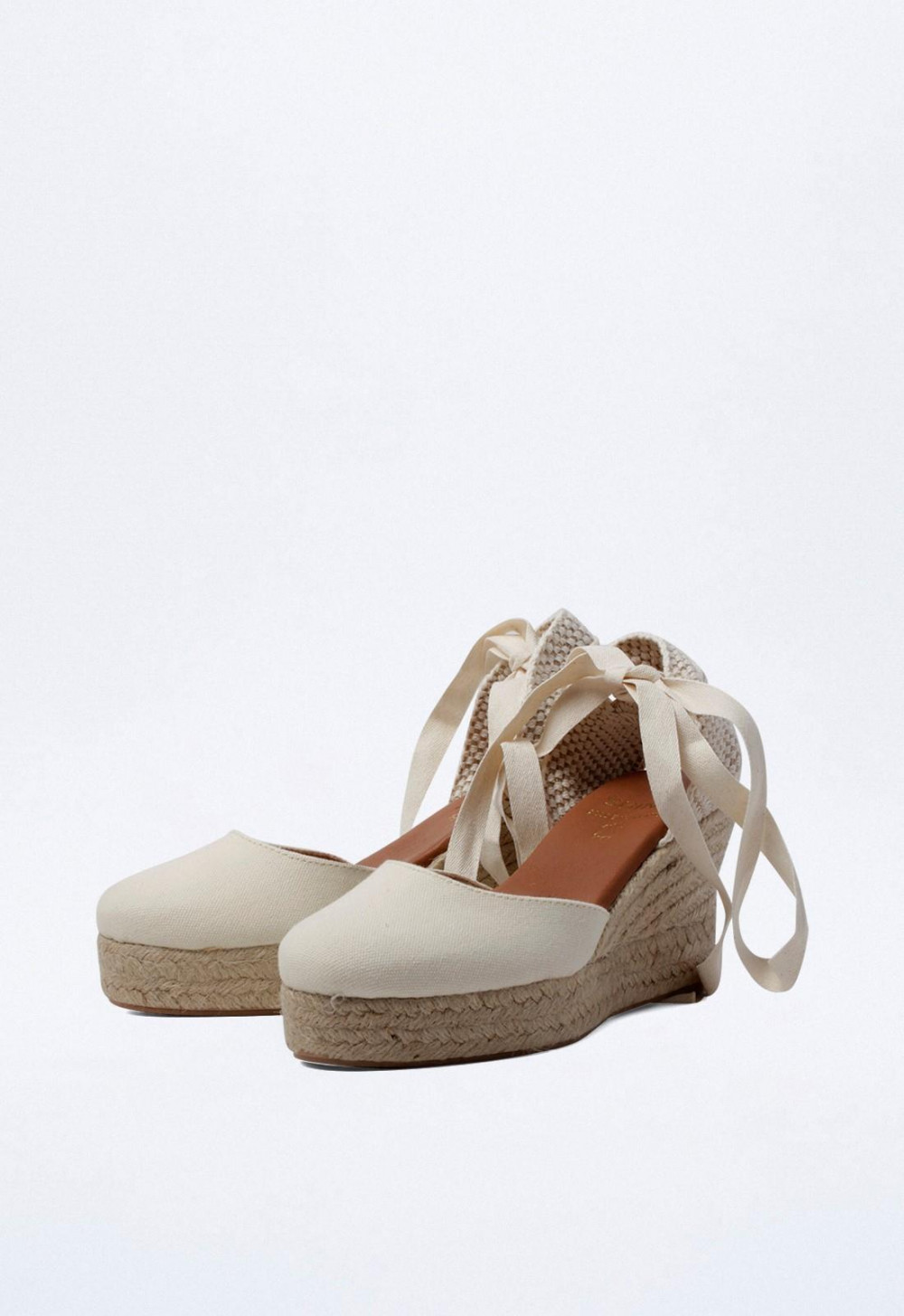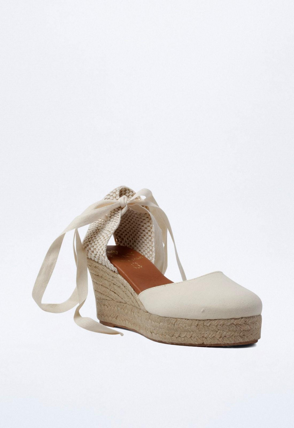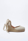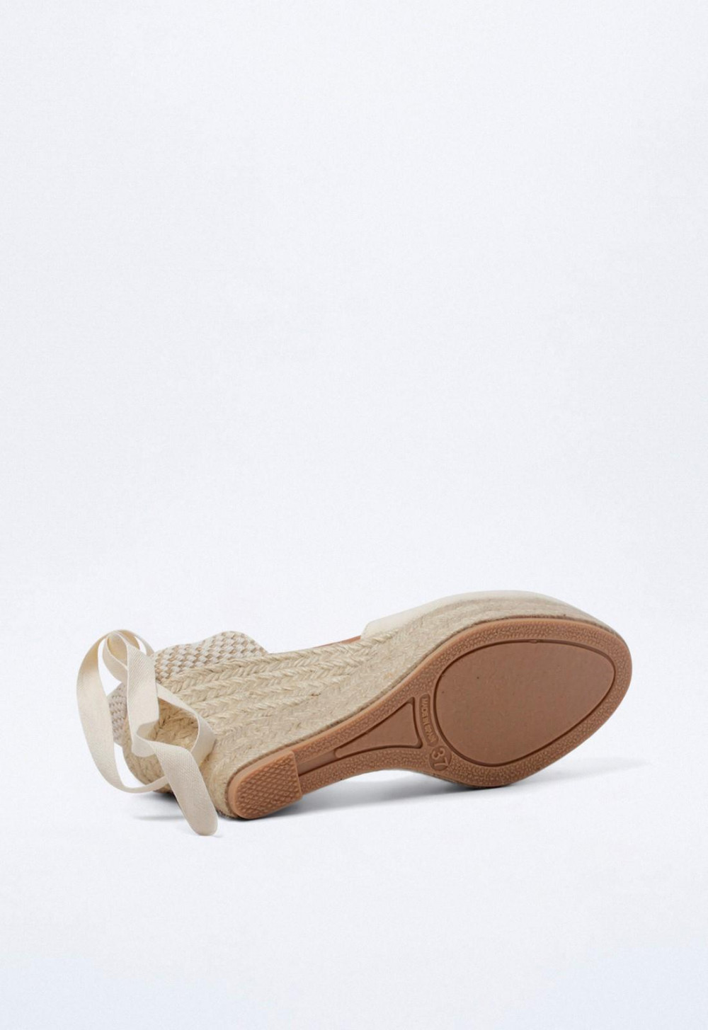 Alpargata de cuña en color crema con suela de esparto y cierre de lazo al tobillo | Shiny 6004