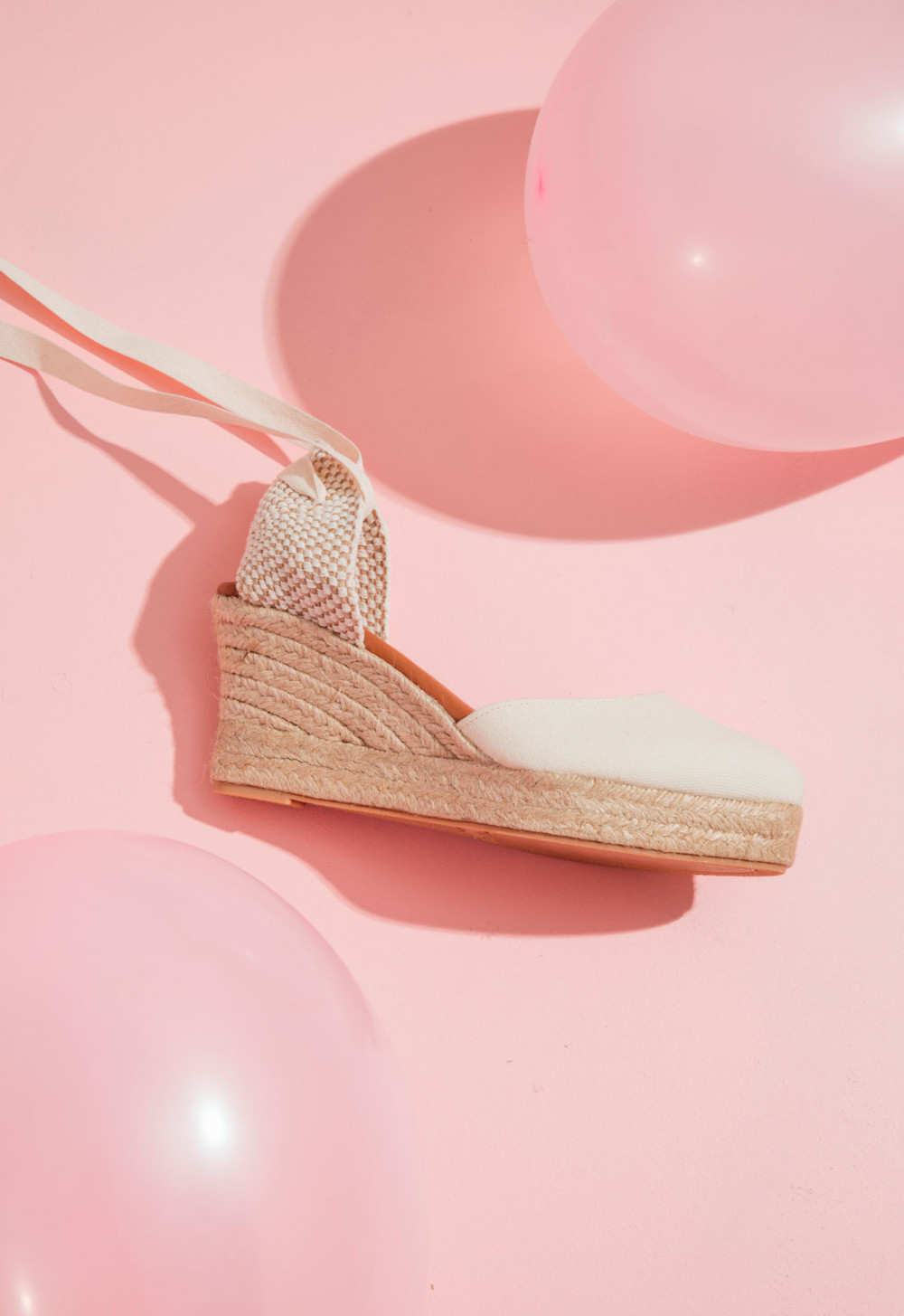 Estilo natural y elegancia con la alpargata de cuña en color crema de Shiny, ideal para el verano.