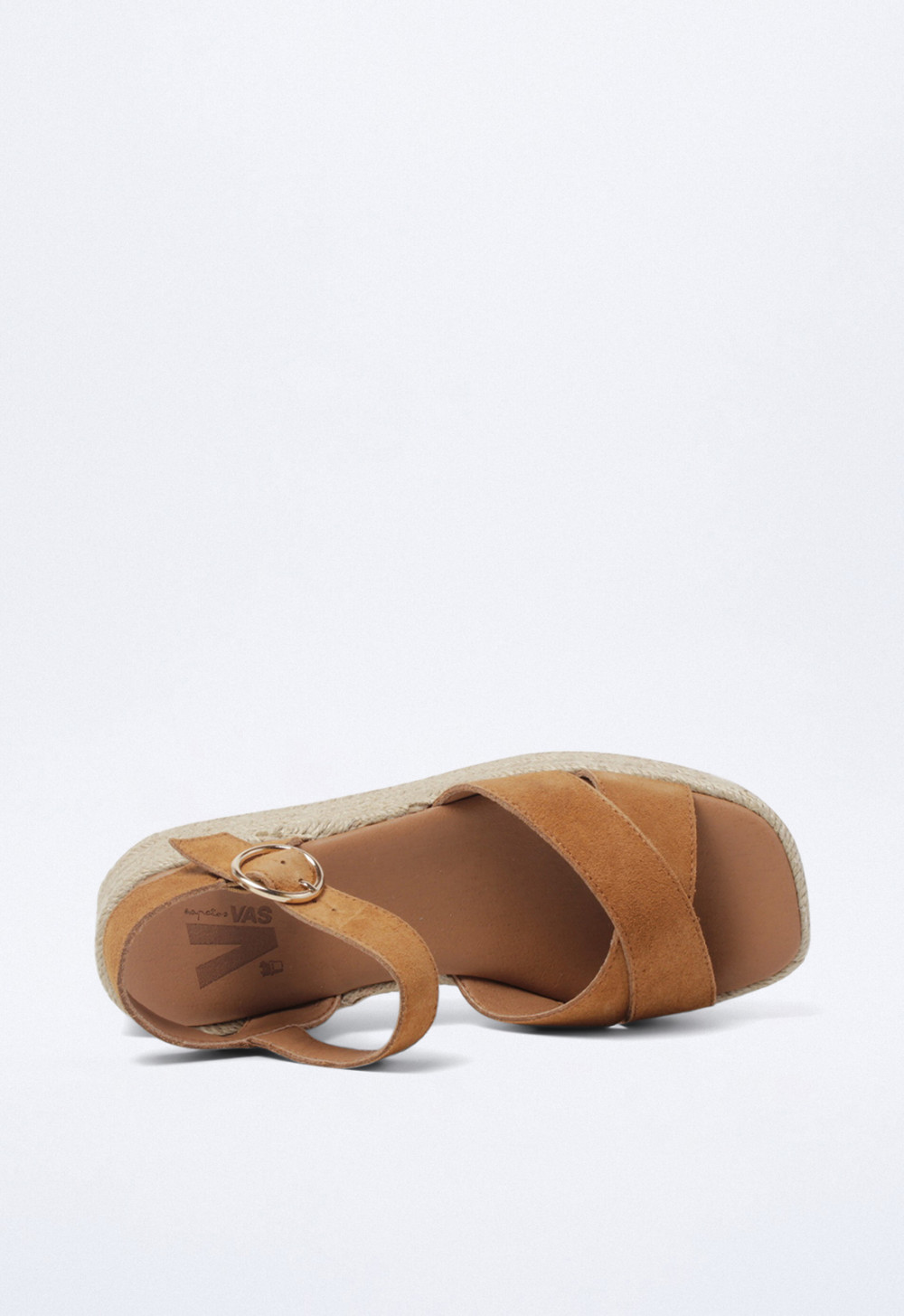 Esta sandalia de cuña de mujer en piel color cuero de la marca propia VAS es ideal para quienes buscan un calzado cómodo, versátil y con inspiración mediterránea. El acabado en piel, junto con la suela de esparto, combina funcionalidad y estética tradicional de manera equilibrada.