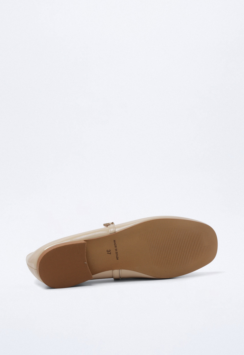 Zapato de Mujer en color Beige, fabricado en Piel con Plano y una altura de 1 cm.
