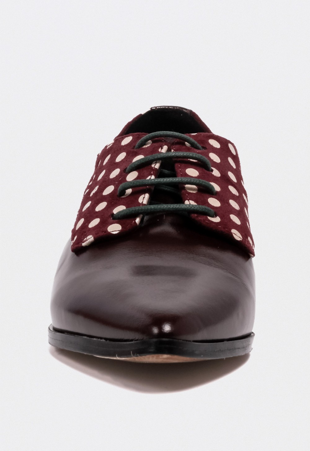 El modelo Stadfish de Glo reinventa el zapato clásico con un aire sofisticado y desenfadado. Confeccionado en piel de alta calidad en tono burdeos, se distingue por su diseño de estampado de lunares en contraste que aporta frescura y un guiño retro-chic. Su silueta estilizada y la punta afilada realzan la feminidad, mientras que el tacón geométrico en tono verde refuerza su carácter innovador y vanguardista. Un calzado diseñado para mujeres que buscan destacar con estilo y personalidad en cada paso.