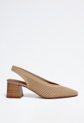 Este modelo ofrece un diseño versátil y femenino ideal para primavera y verano. Su formato destalonado con tacón ancho de altura media proporciona una pisada estable y cómoda durante todo el día. El tono camel lo convierte en un básico fácil de combinar, perfecto para looks casuales o más formales.