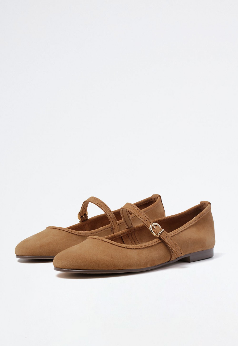 Esta bailarina plana está confeccionada en piel suave color cuero, con un diseño elegante y funcional que se adapta perfectamente a looks tanto casuales como más refinados. Su tira horizontal con hebilla metálica aporta sujeción y un toque distintivo al conjunto.