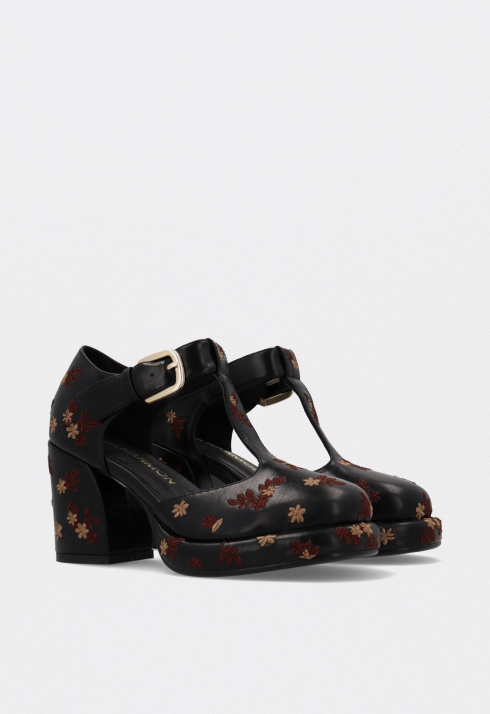 El Noa Harmon Theodora reinterpreta el clásico Mary Jane con un aire fresco, romántico y muy actual. Fabricado de forma artesanal con materiales premium, este modelo made in Valencia apuesta por una napa vegana en color negro decorada con delicados bordados florales que lo convierten en un auténtico must-have para el otoño.