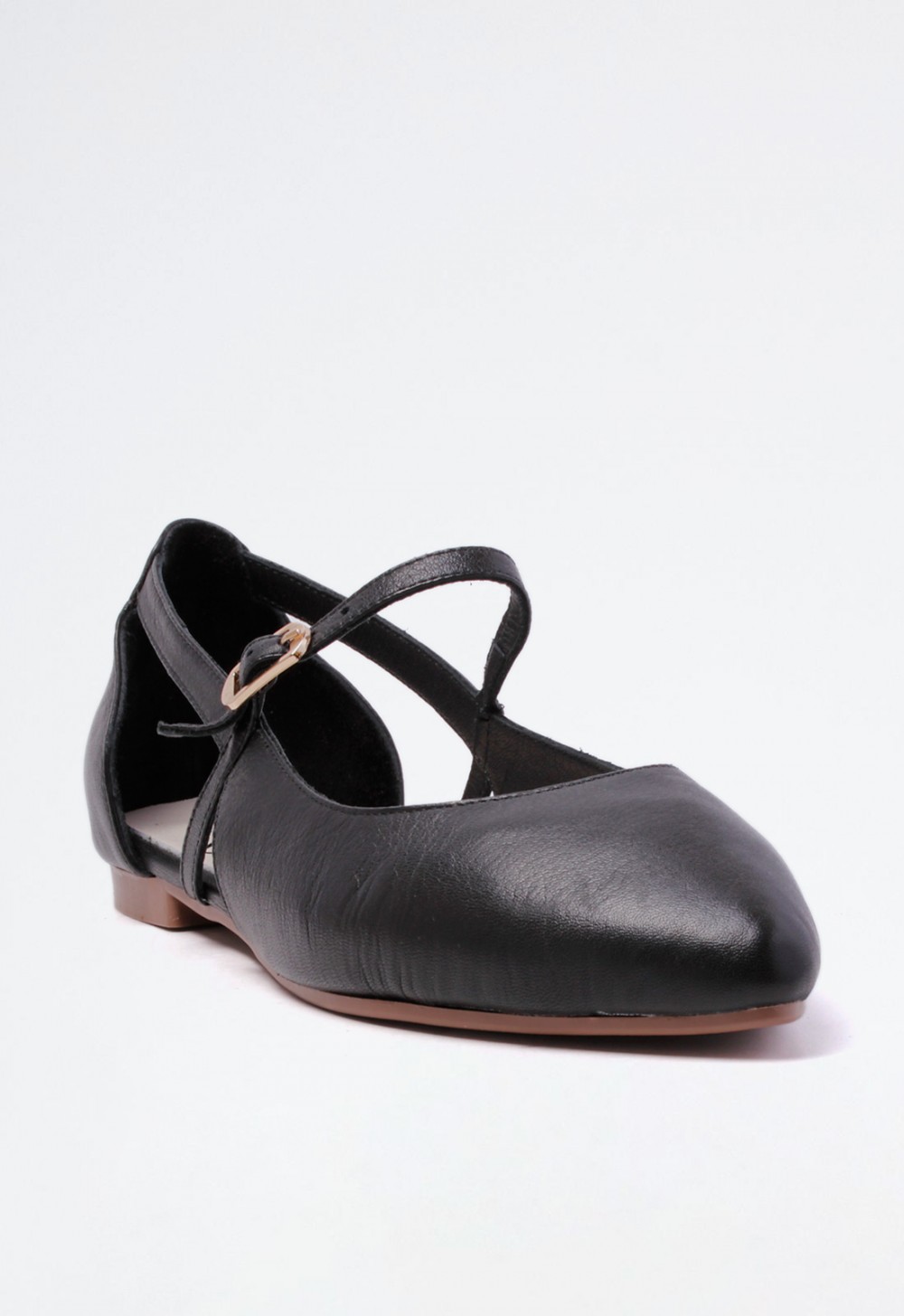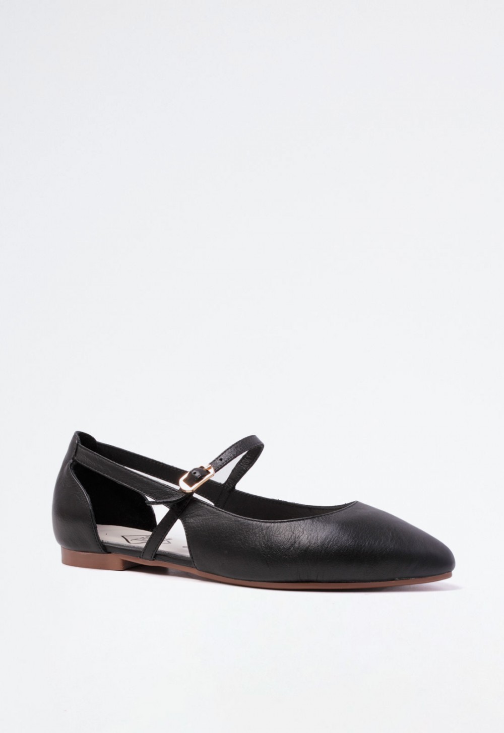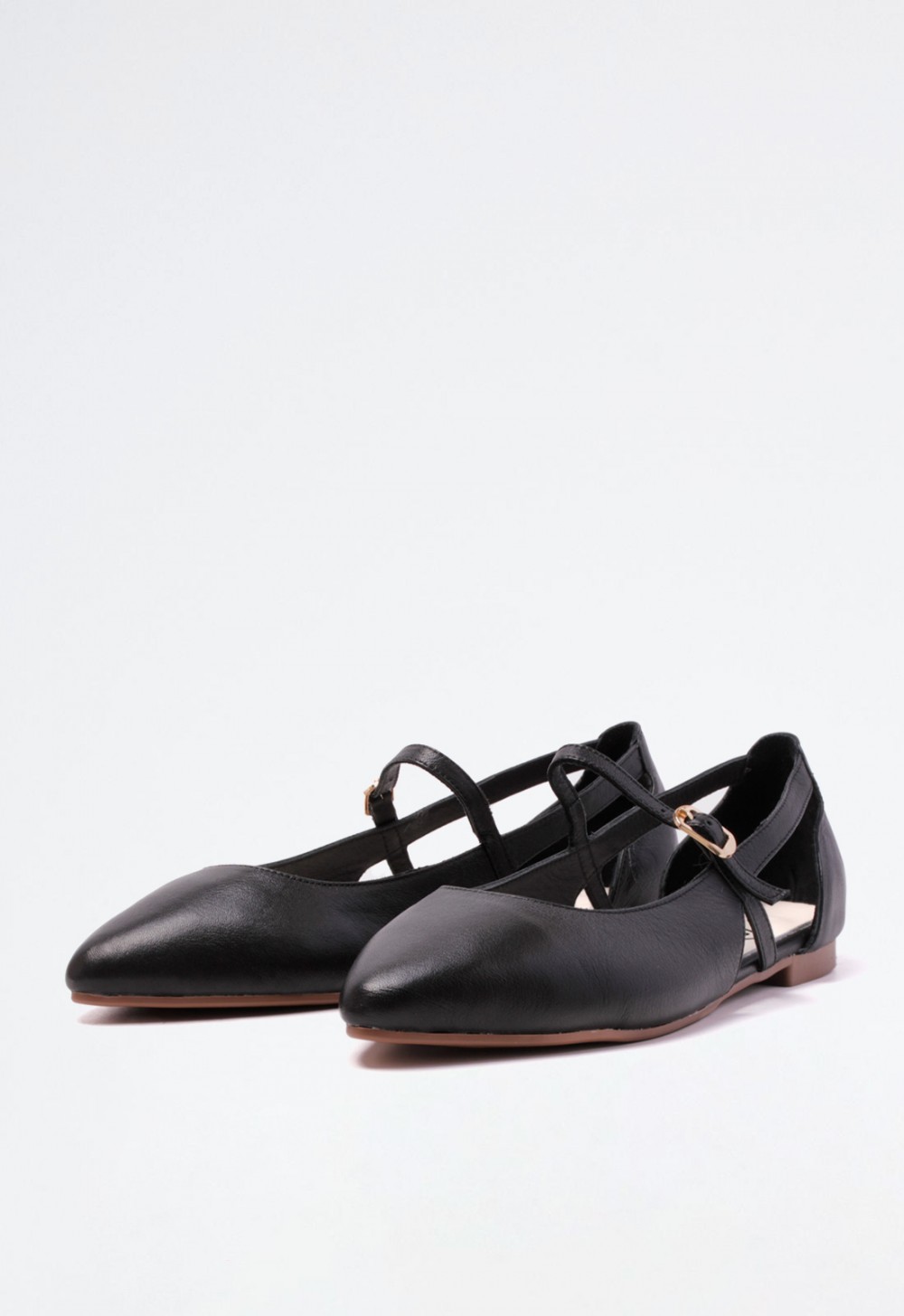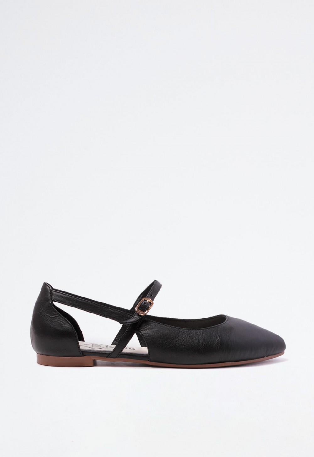 Esta bailarina plana destaca por su diseño abierto en los laterales, que aporta frescura y ligereza visual. Está fabricada en piel, lo que asegura suavidad, durabilidad y un acabado sofisticado.
