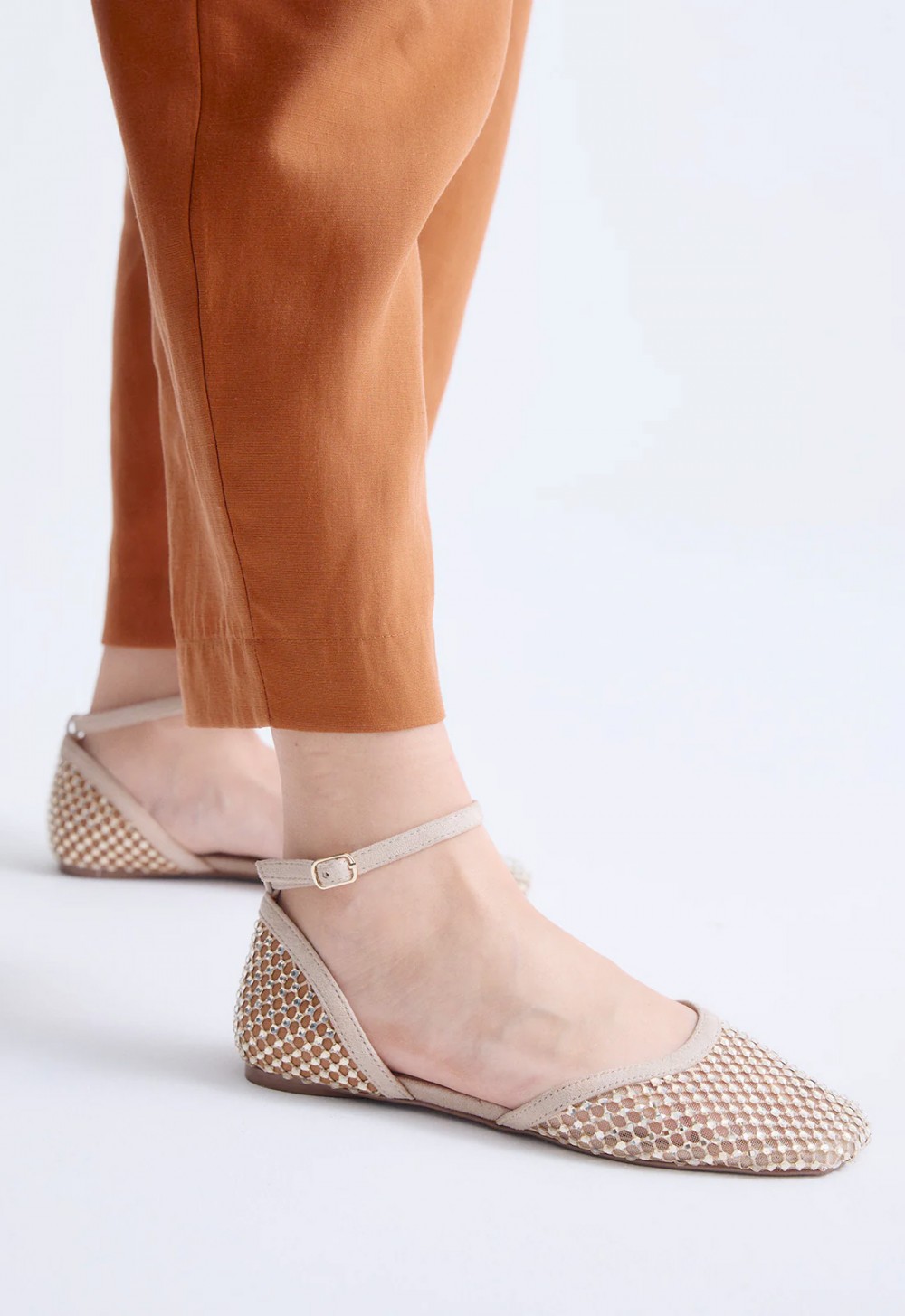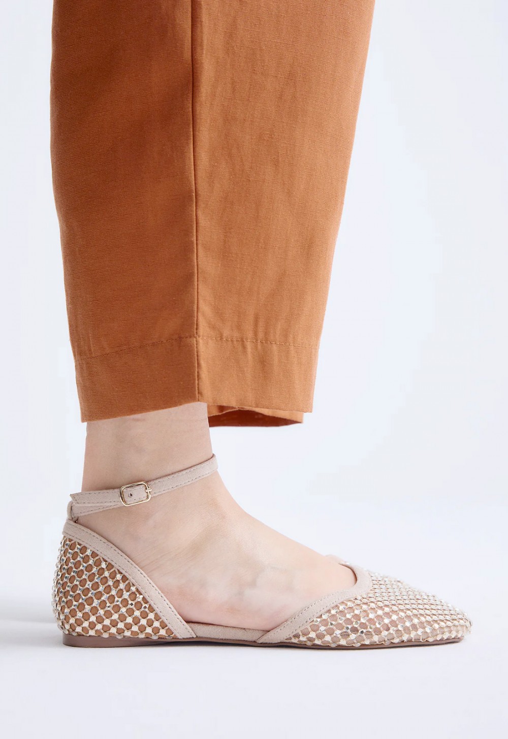 La bailarina Exé Veronica-446 Strass Gold es el toque brillante que transforma cualquier look. Su diseño plano en color dorado con acabado de strass aporta un efecto joya sofisticado, femenino y muy actual. Perfecta para eventos, invitadas o para elevar estilismos más sencillos, combina elegancia y comodidad en cada paso. El cierre de hebilla mejora la sujeción, mientras que la plantilla de cuero aporta una pisada más confortable. Una bailarina dorada ideal para destacar con estilo tanto de día como de noche.