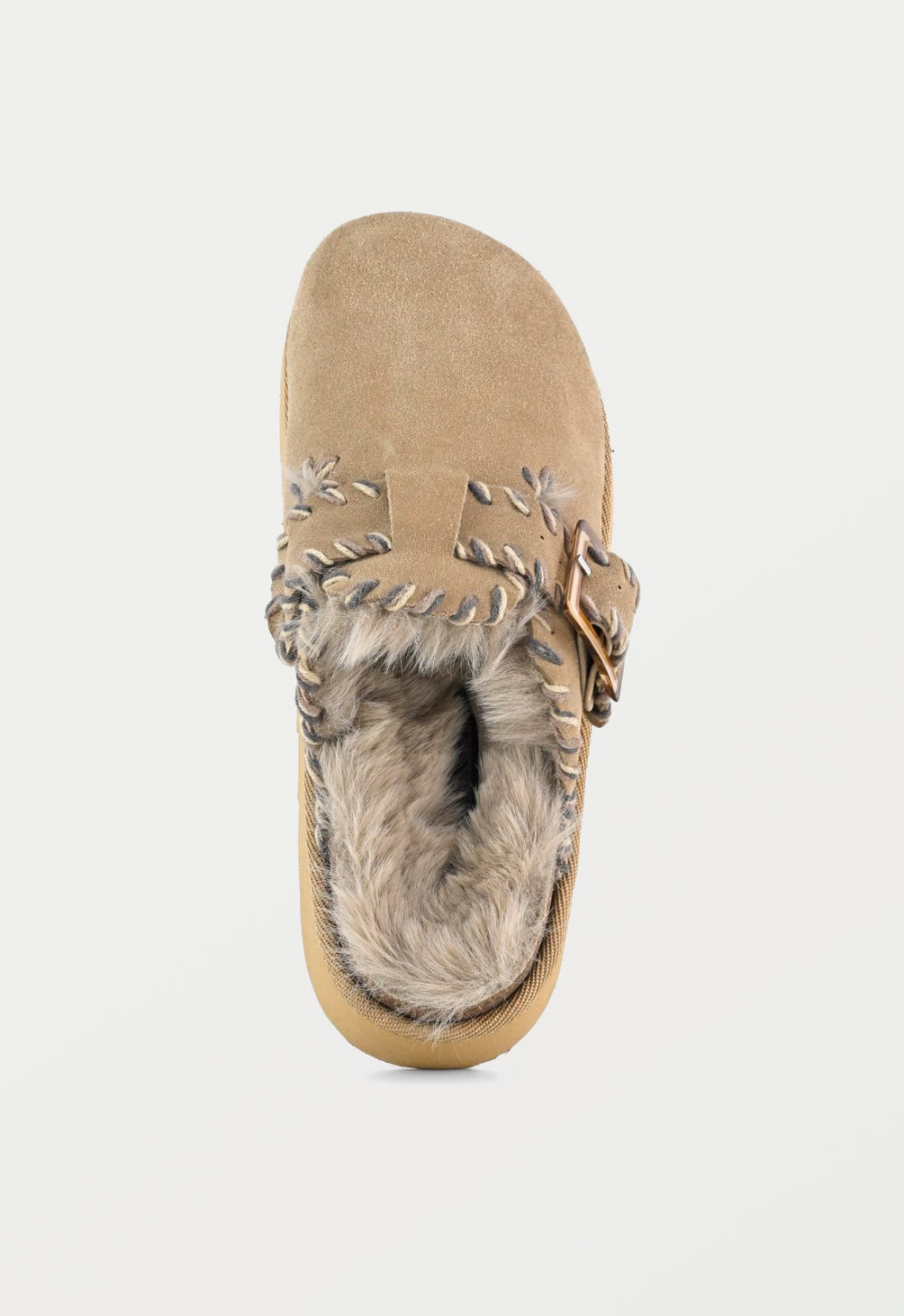 Zueco de Mujer en color Beige, fabricado en Piel con Plano plataforma y una altura de 4 cm.